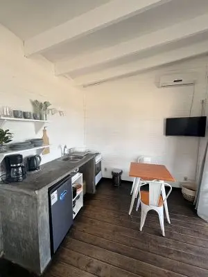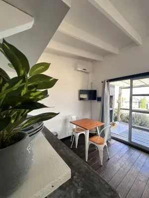 Disfrute de una estadía cómoda y tranquila en Nomade 2, una cabaña monoambiente ubicada a pocos metros del mar.