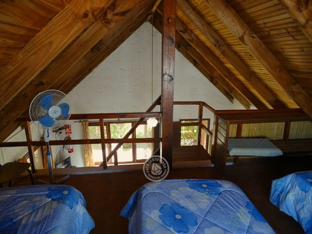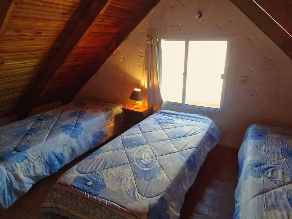 Entrepiso con 3 camas simples y dormitorio abajo con 1 cama doble.