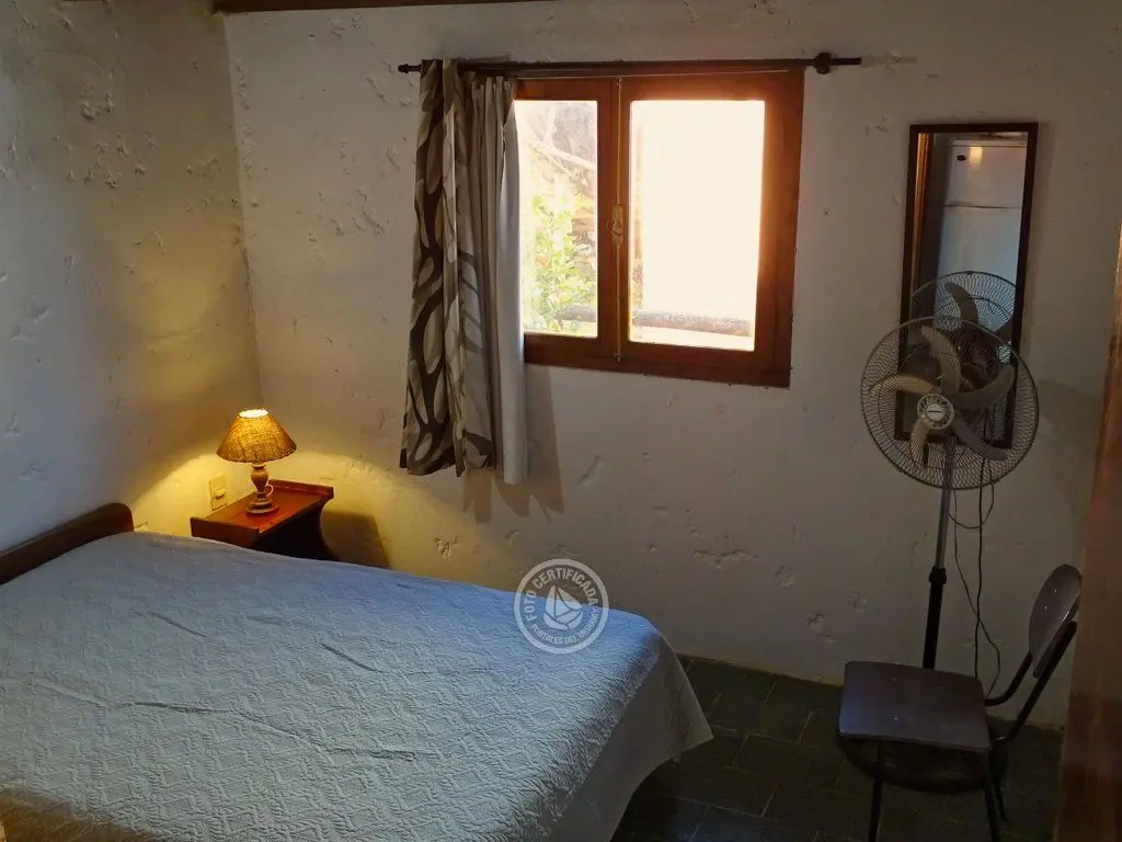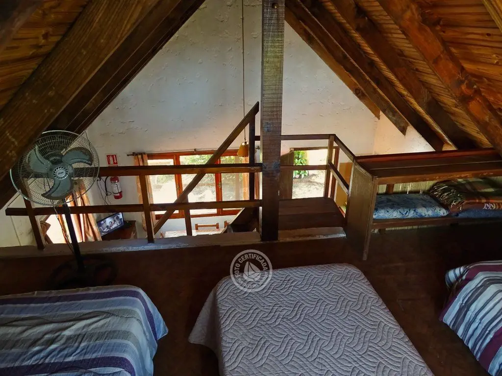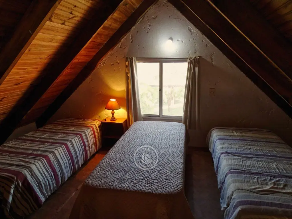 Entrepiso con 3 camas simples y dormitorio abajo con 1 cama doble.