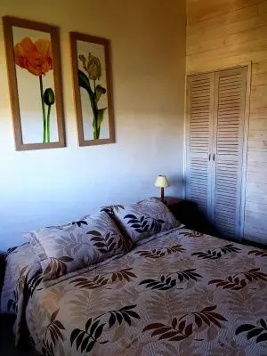 Un dormitorio con cama matrimonial y aire-acondicionado (frío-caliente)