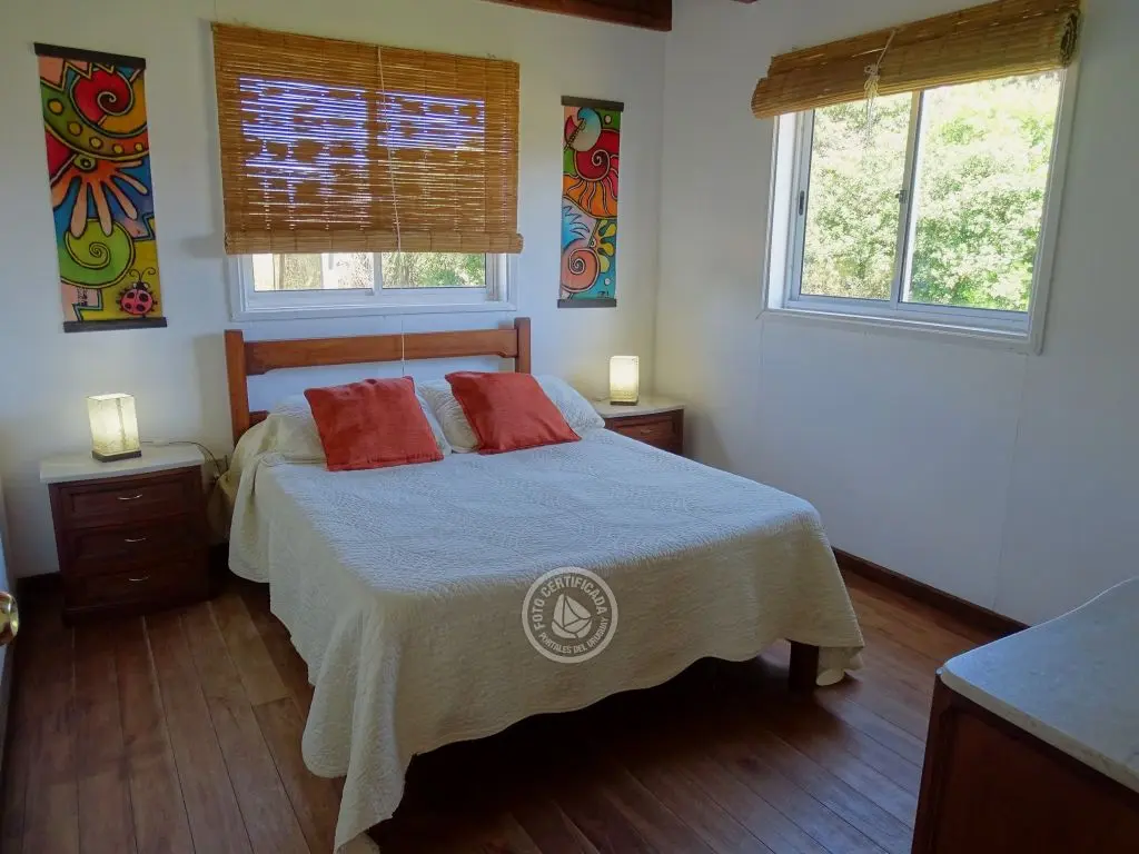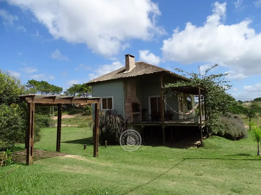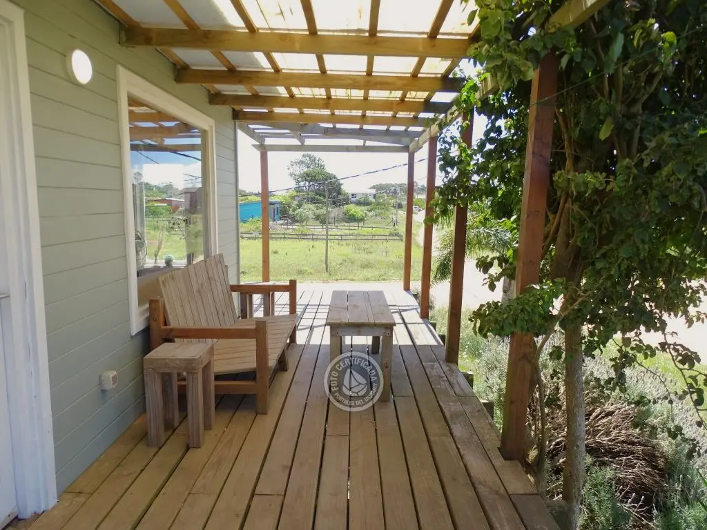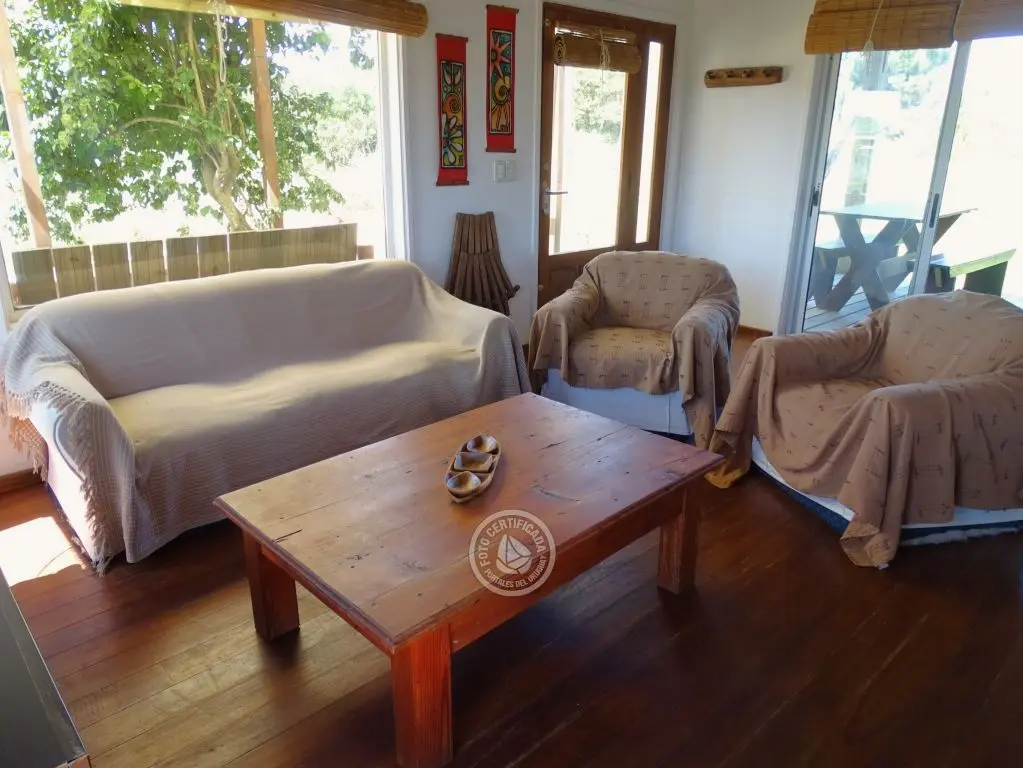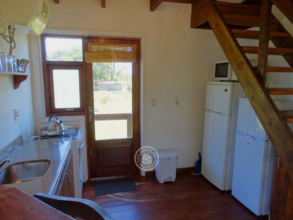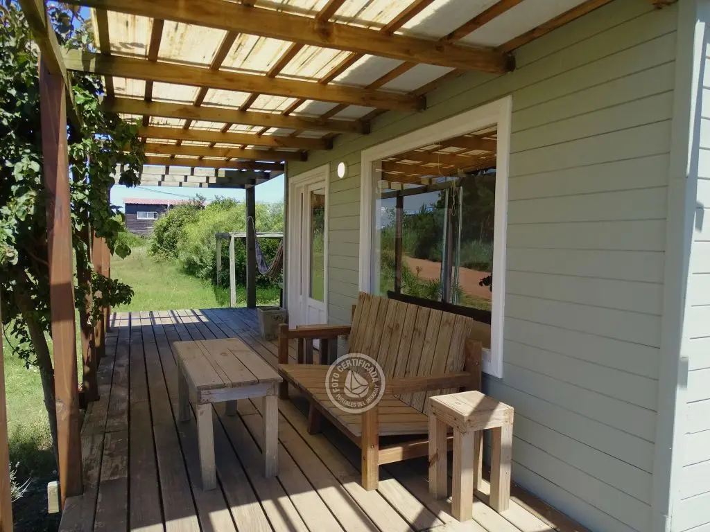 Cabaña con finas terminaciones, dos dormitorios, uno en planta baja con cama matrimonial y otro en planta alta con 3 camas individuales, baño muy moderno, cocina totalmente equipada, living comedor, parrillero techado , deck de dimensiones importantes y 1000mt2 de espacio exterior totalmente parquizado.