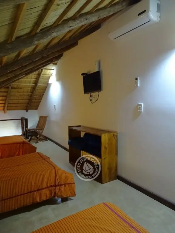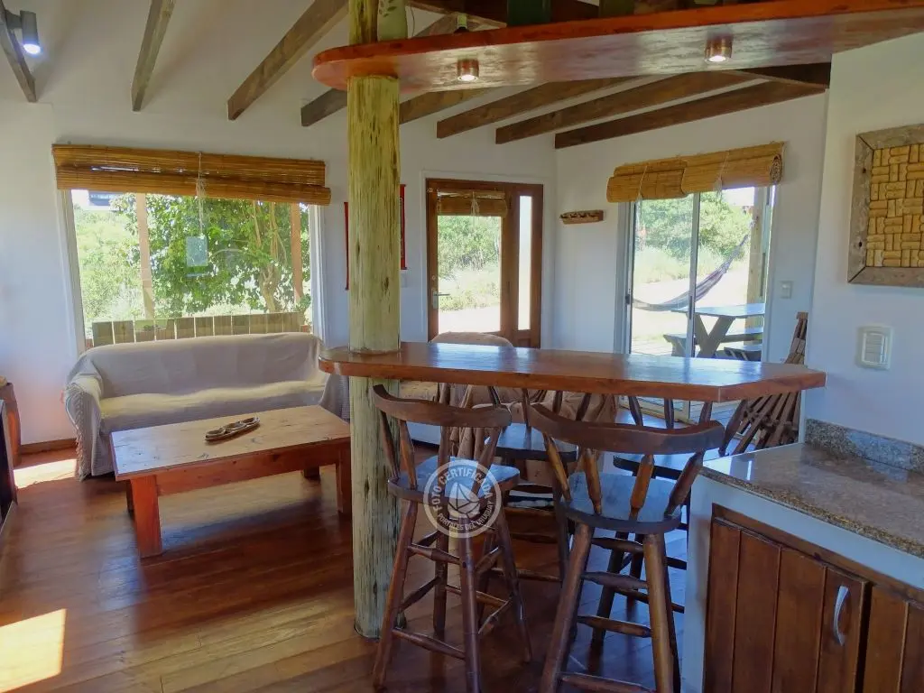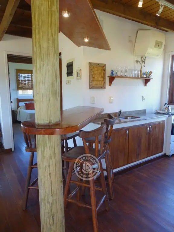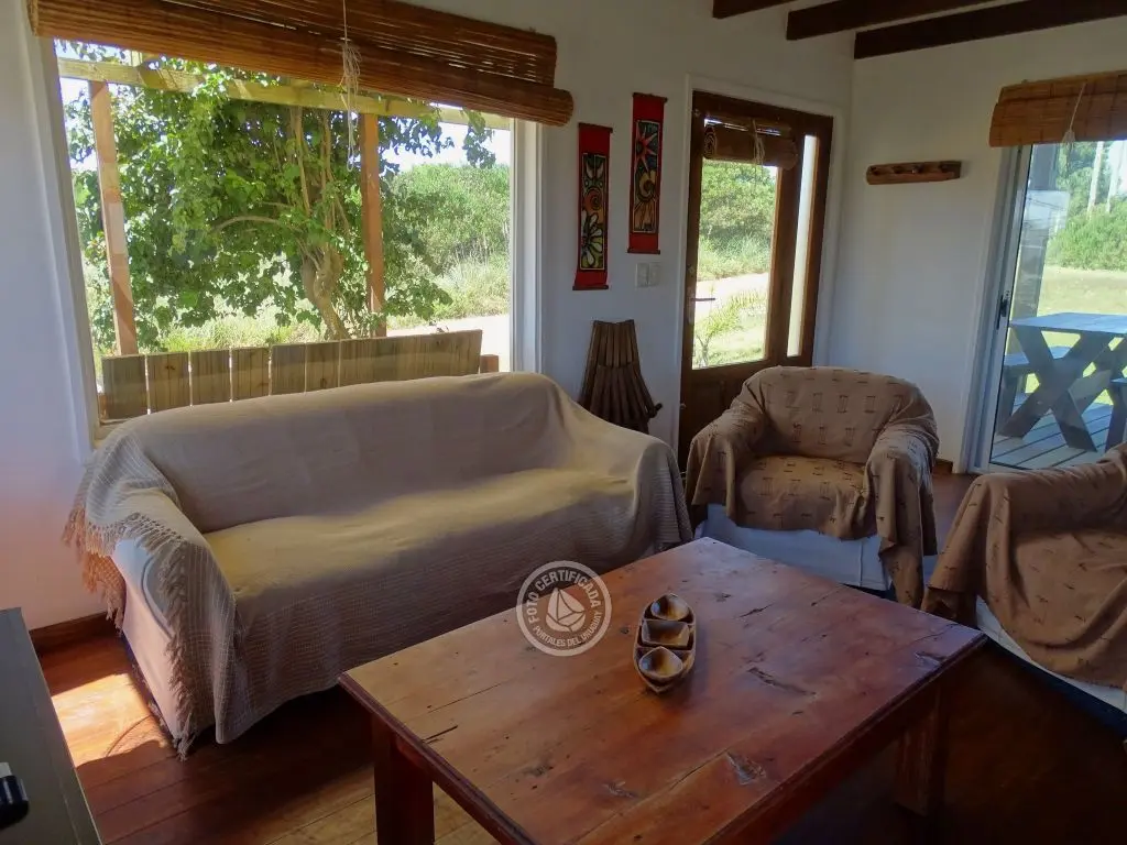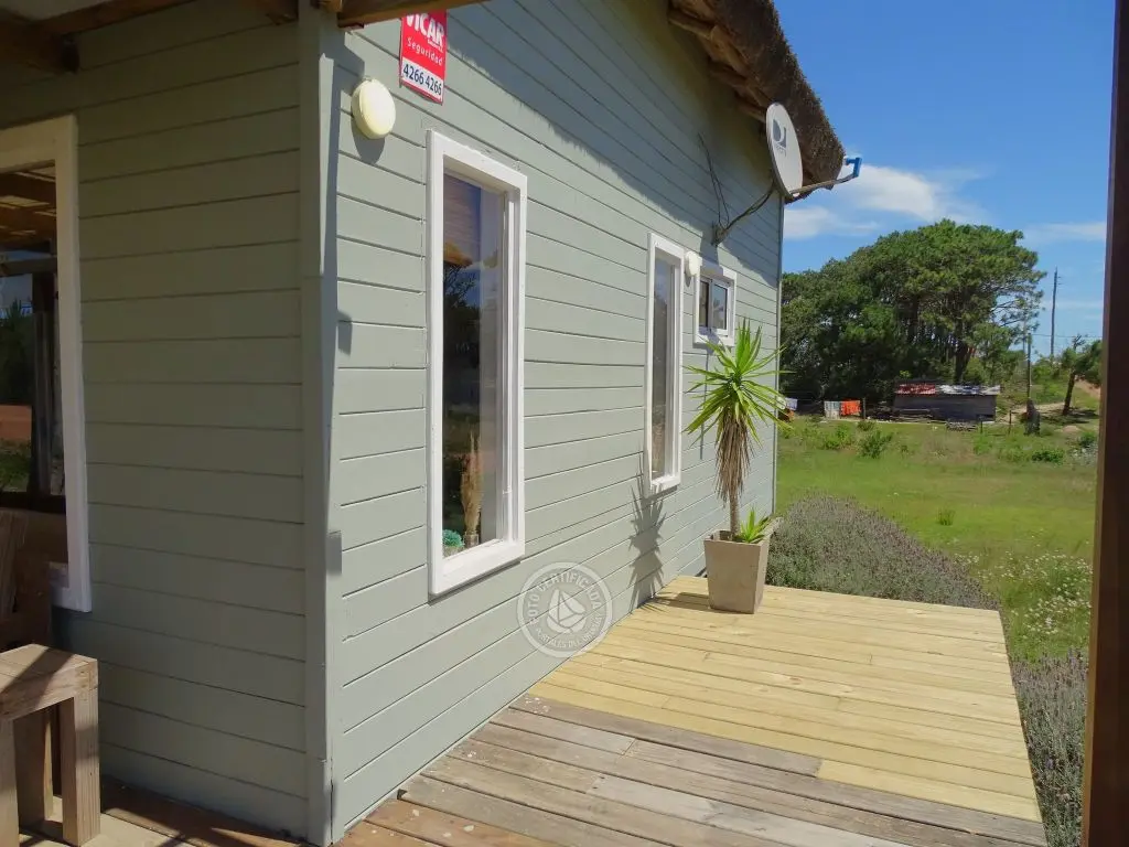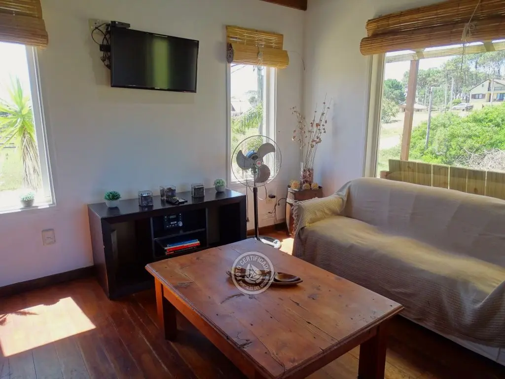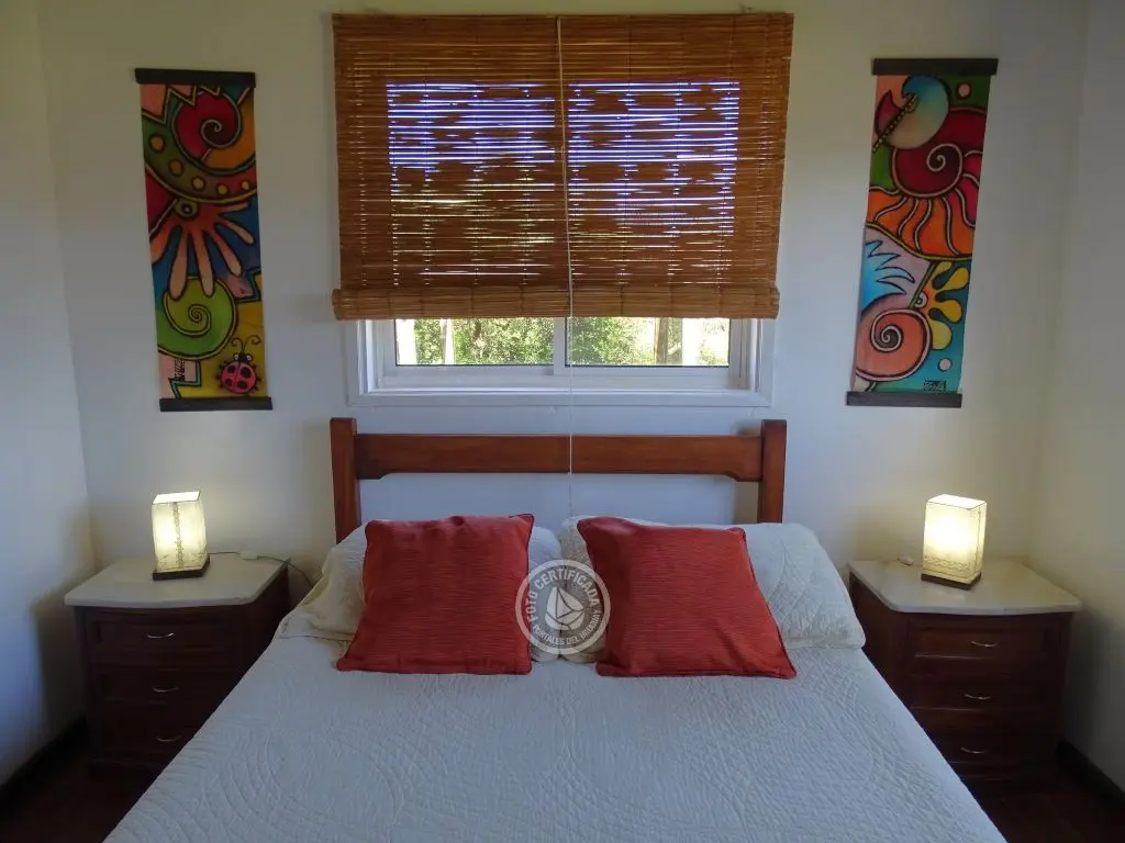 Cabaña con finas terminaciones, dos dormitorios, uno en planta baja con cama matrimonial y otro en planta alta con 3 camas individuales, baño muy moderno, cocina totalmente equipada, living comedor, parrillero techado , deck de dimensiones importantes y 1000mt2 de espacio exterior totalmente parquizado.