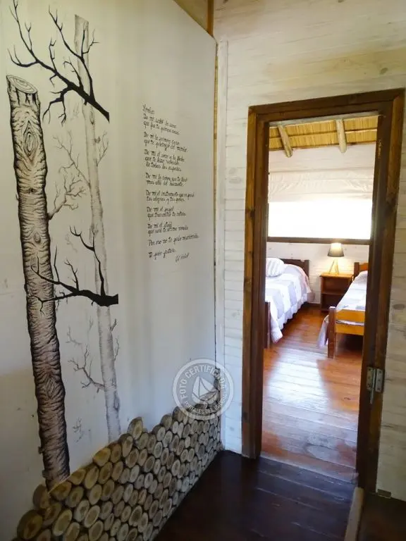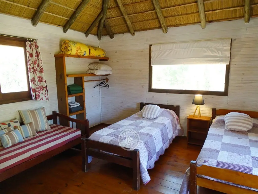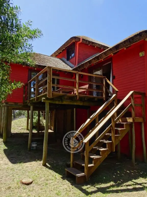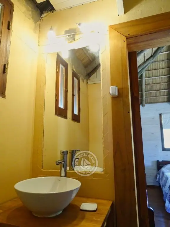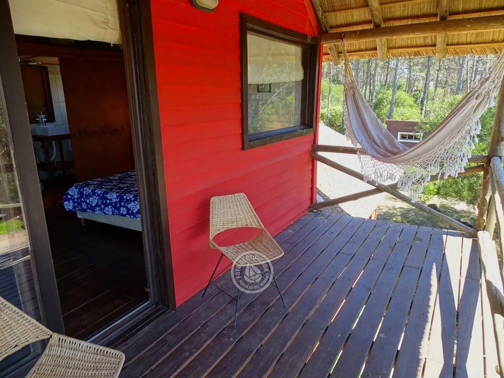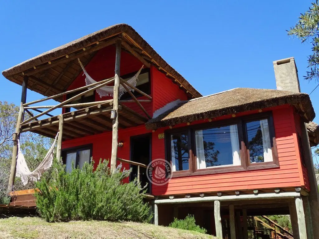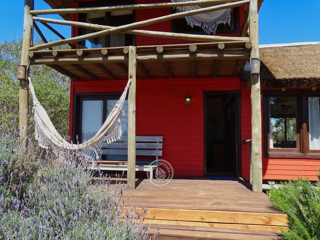 La casa cuenta con dos habitaciones espaciosas. Una de ellas se encuentra en el primer piso, es una habitación doble con su baño privado en suite y amplio balcón con hamaca y sillón, desde donde se tiene vista a la duna y el mar.