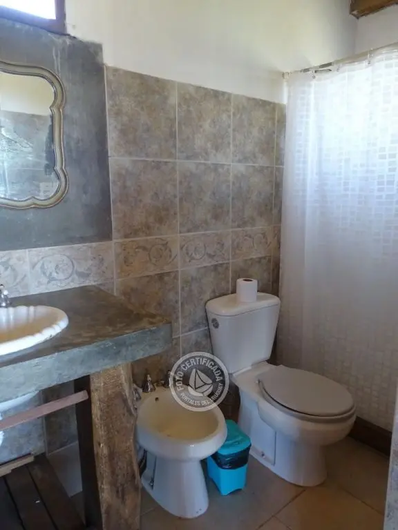 Tenés dos decks, uno en planta baja con hamaca paraguaya y sillas y otro deck en la planta alta.