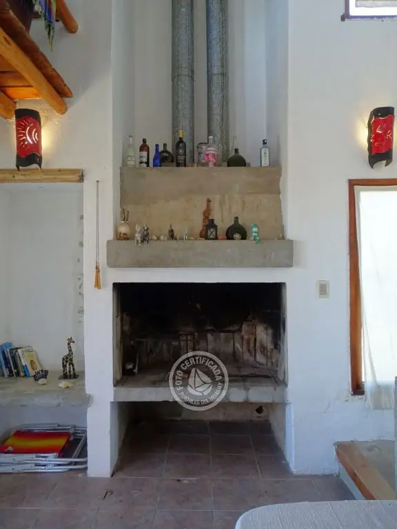 La planta baja cuenta con la cocina, una barra, el baño, la chimenea y el living con un sillón.