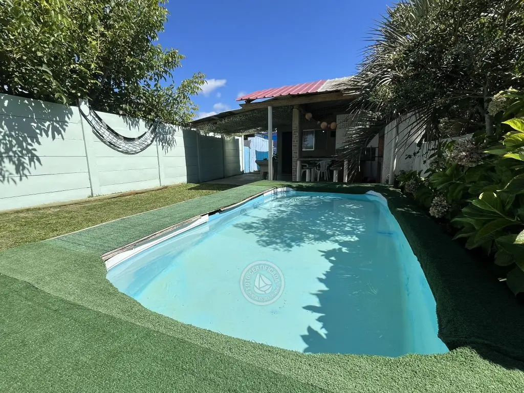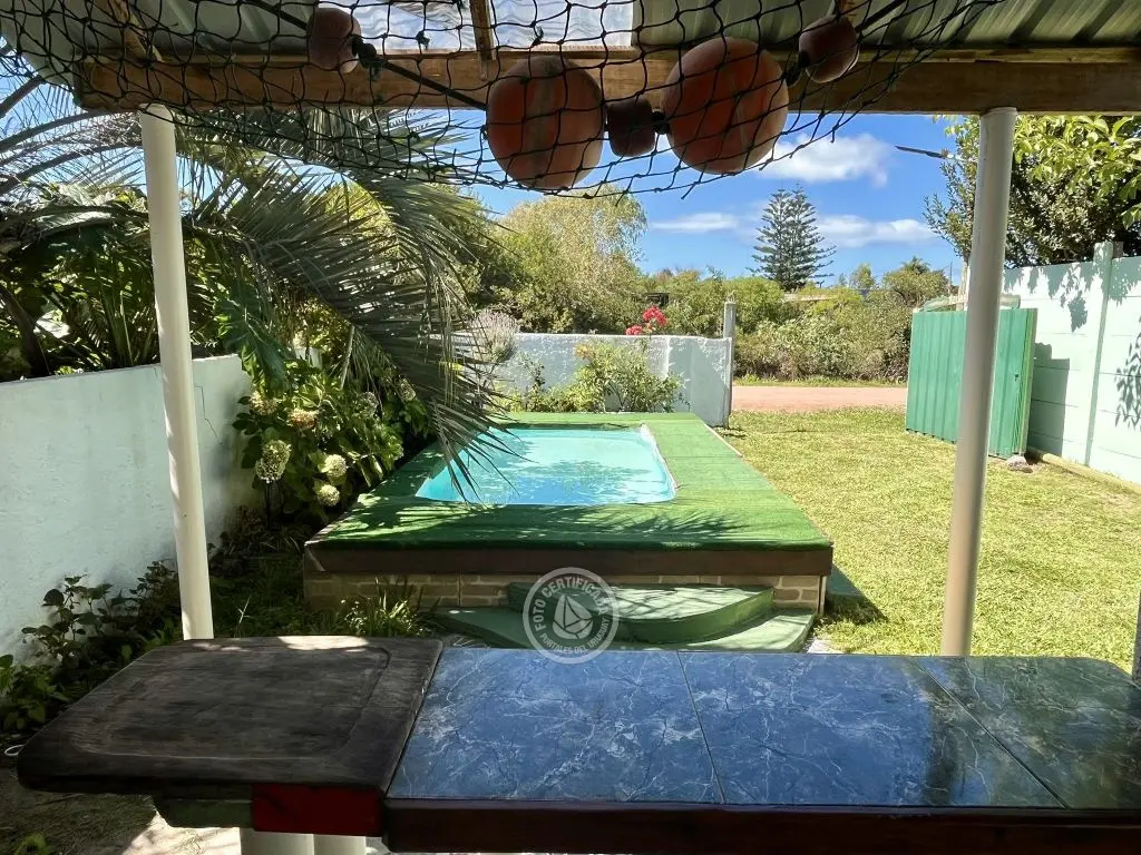 Casa para 5 personas (2 dormitorios) en La Coronilla con piscina, a 5 cuadras de la playa, y de Karumbe, a 1 cuadra de pizzería y restaurante. Locales comerciales (panadería, carnicería, super, farmacias a 3 cuadras. Agencia Rutas del Sol a 1/2 cuadra.