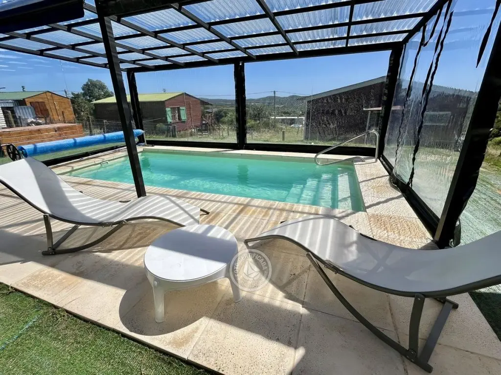 En Alma Serrana encontraras todo lo que necesitas para un descanso reparador. Amplio espacio exterior, piscina climatizada con cerramiento para disfrutar todo el año, aire puro, parrillero techado y wifi.