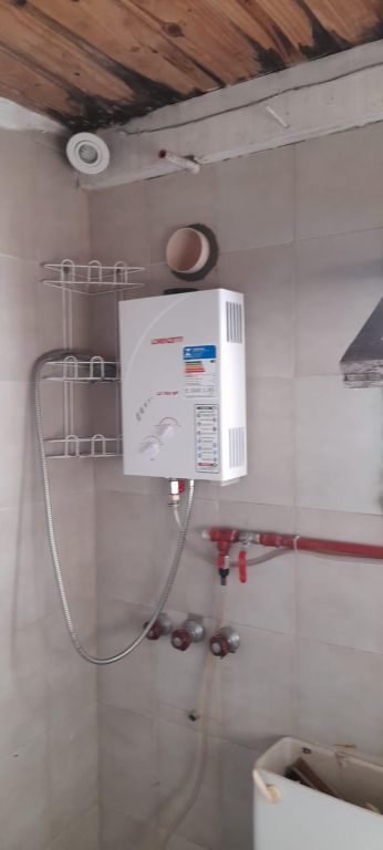 agua caliente en la ducha a calefón a gas