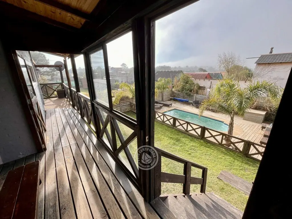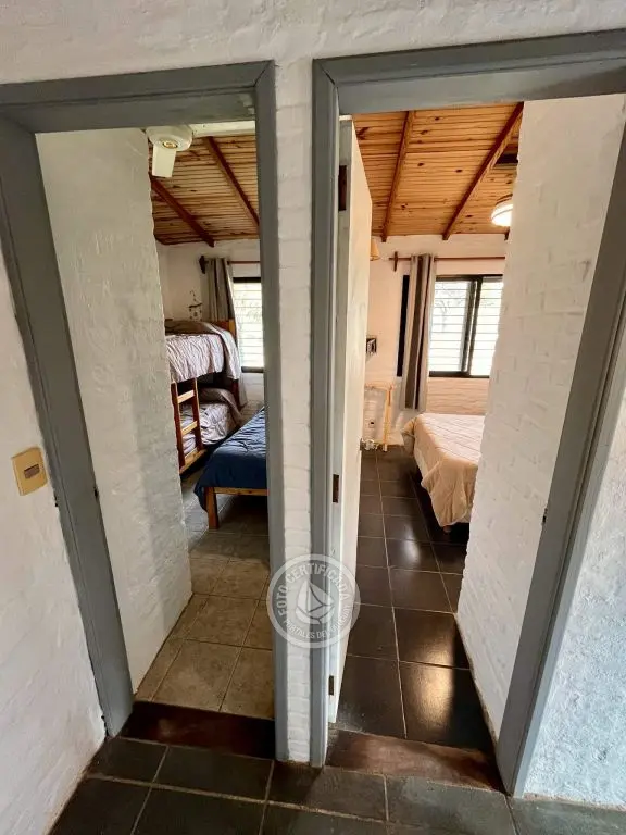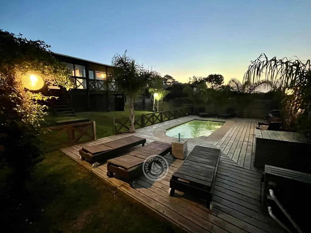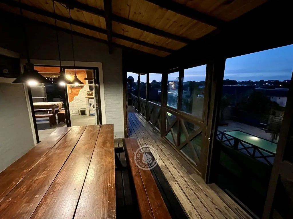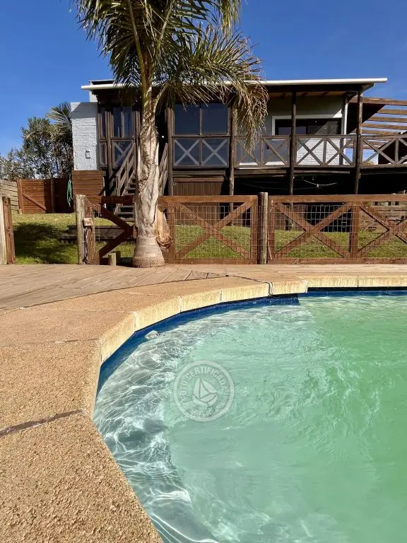 Casa para 7 personas en zona Sur con piscina privada y climatizada con bomba de calor que se habilita a partir del 1 de Noviembre hasta Turismo. Cuenta con 2 dormitorios matrimoniales ( uno en suite ) y 1 dormitorio con 3 camas simples . Diseñada para disfrutarla en familia. No sé alquila a jóvenes.