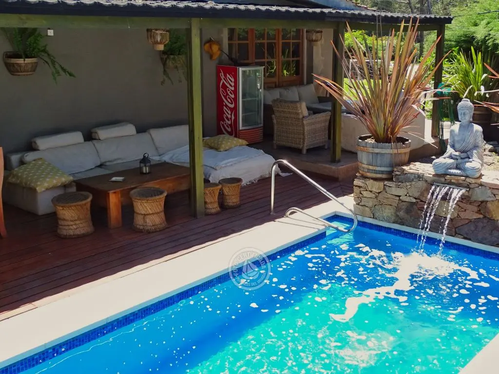 *Piscina de cemento totalmente climatizada, con sistema ecológico libre de cloro con cascada de agua.