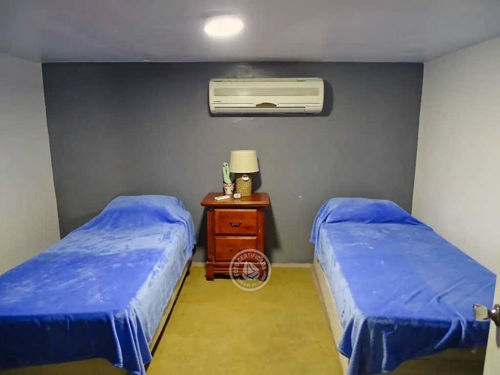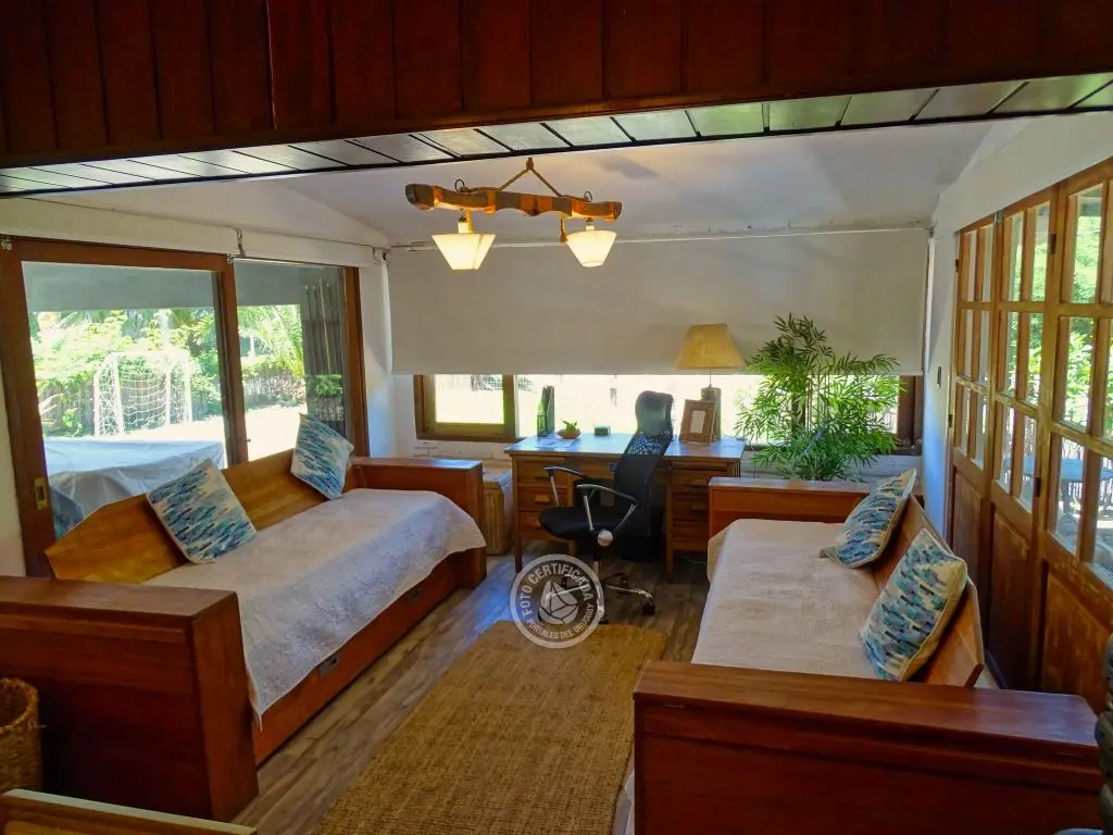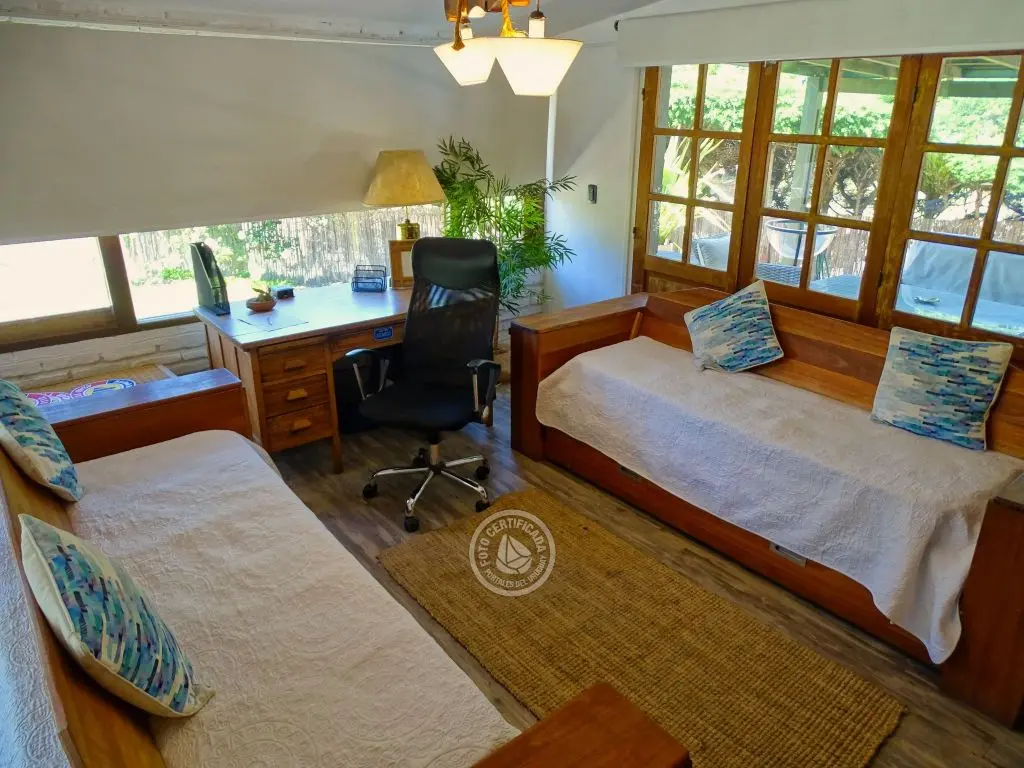 * Playroom o 5 dormitorio opcional con dos amplios sillones camas marineras de madera rústica.