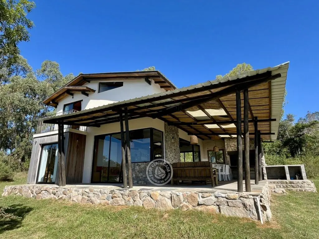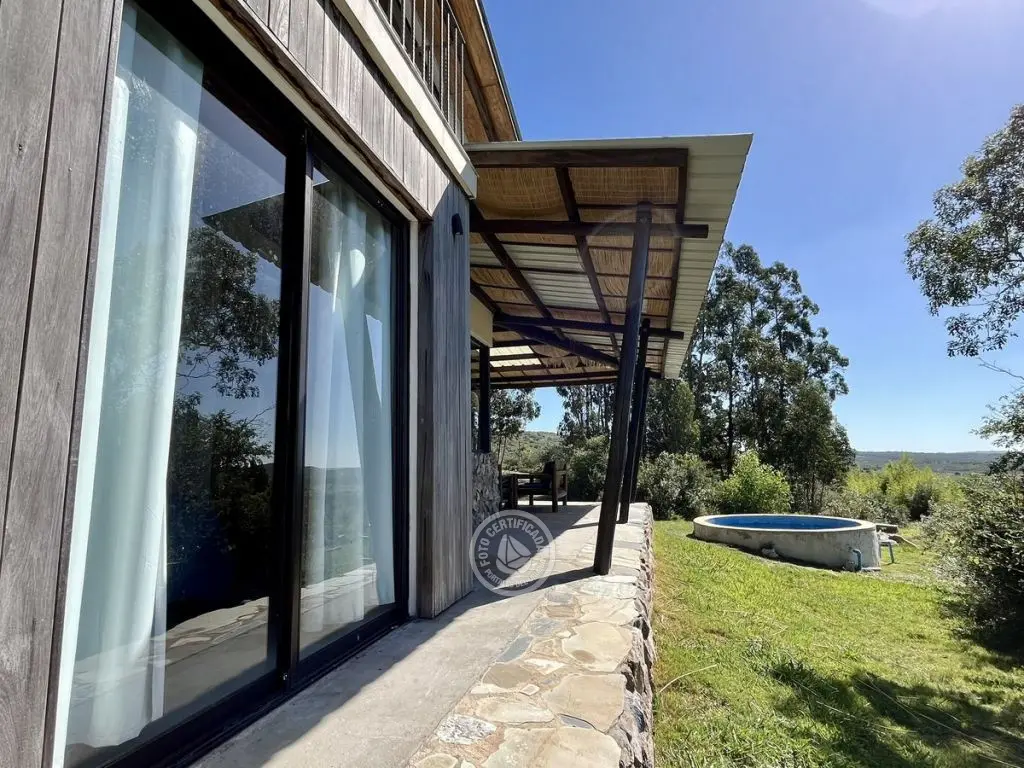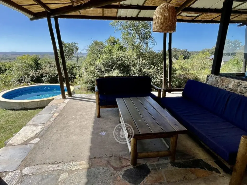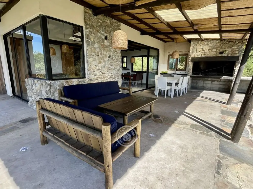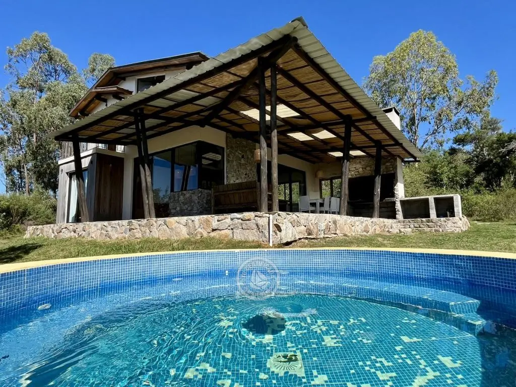 Este tipo de construcción es muy térmica, lo que genera que en verano sea muy fresca y en invierno muy cálida, la calefacción a leña de alto rendimiento es excelente lo que permite que toda la casa quede muy bien calefaccionada. Ubicada en la cima de un cerro con excelente vista a las sierras y sus valles.