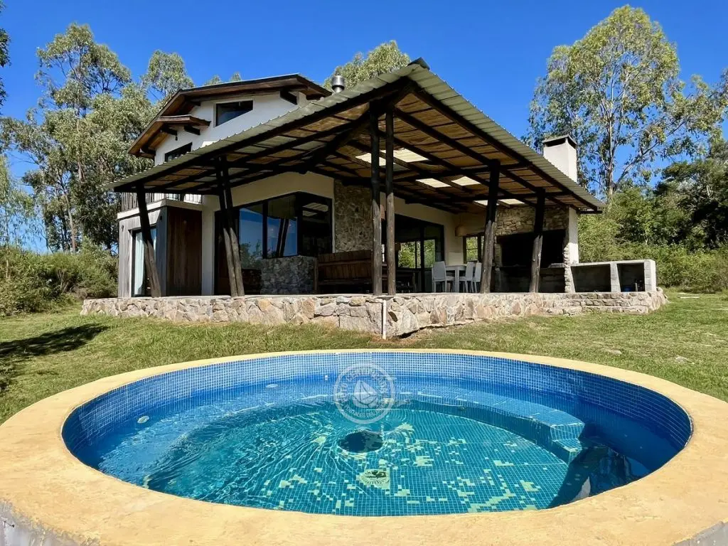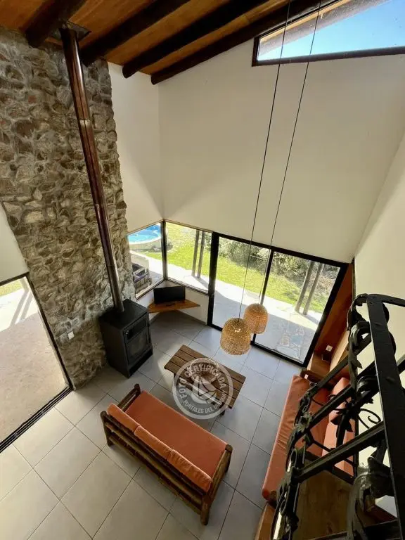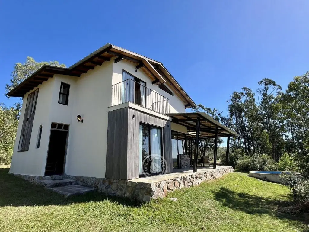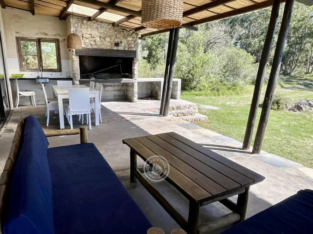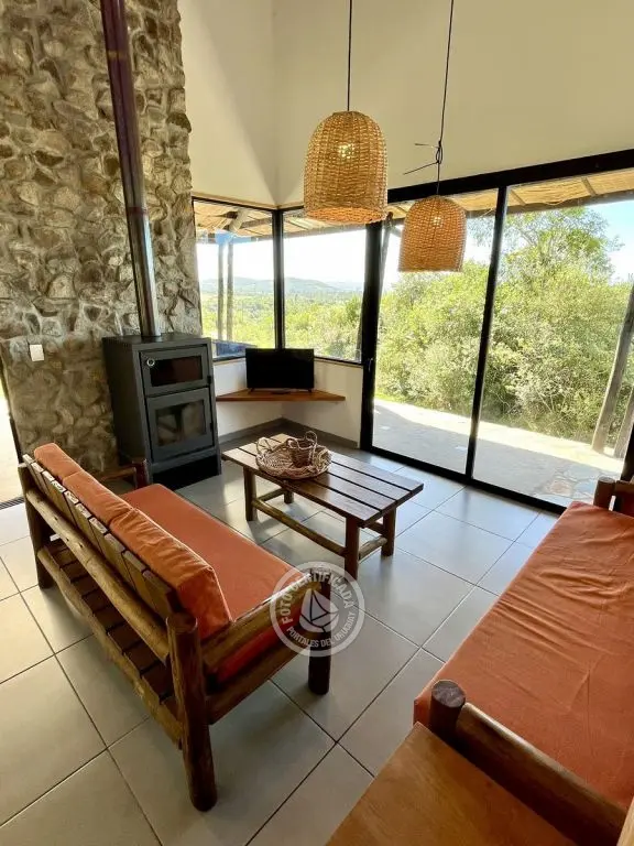 Este tipo de construcción es muy térmica, lo que genera que en verano sea muy fresca y en invierno muy cálida, la calefacción a leña de alto rendimiento es excelente lo que permite que toda la casa quede muy bien calefaccionada. Ubicada en la cima de un cerro con excelente vista a las sierras y sus valles.