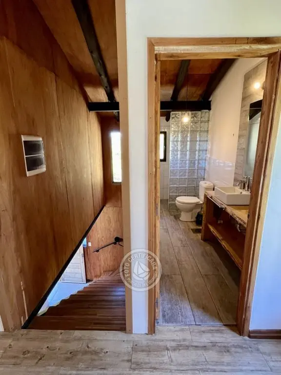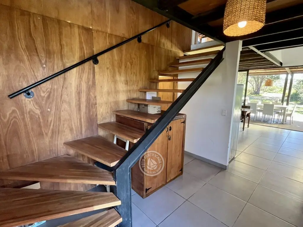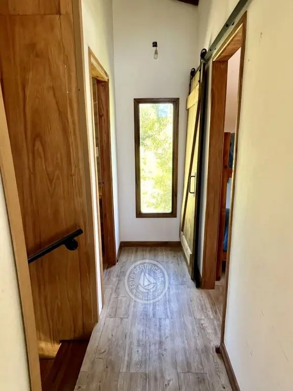 Planta baja 1 dormitorio con ventanal y salida independiente a balcón (1 cama doble y 1 simple), baño completo, living comedor con cocina completa integrada, estufa a leña de alto rendimiento con horno incorporado a la estufa para disfrutar y cocinar todo lo que te imagines, también se puede incorporar pequeña parrilla. Toda la planta baja vidriada para disfrutar de la vista y el verde nativo que la rodea.