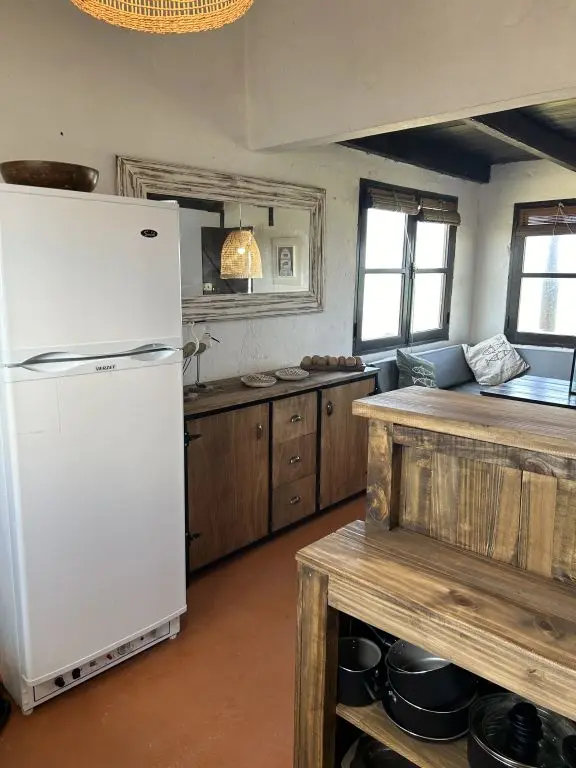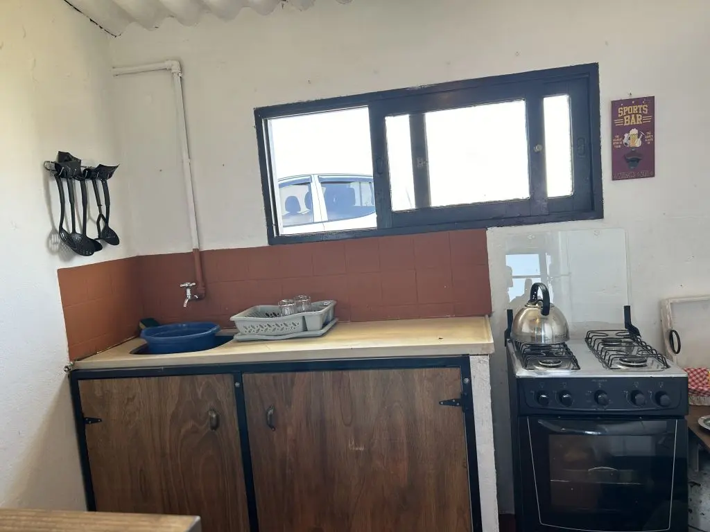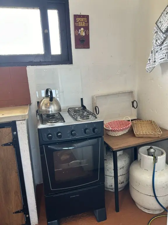 Baño con calefon, cocina completa, luz electrica con panel solar.