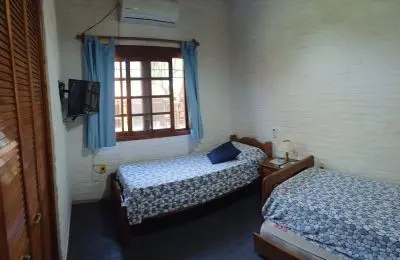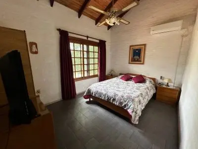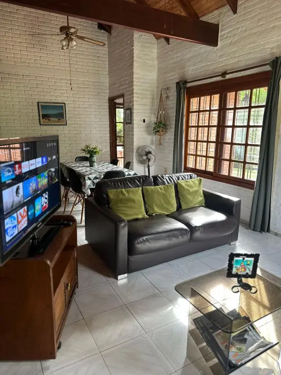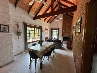 Cuenta con un living-comedor amplio con estufa a leña; 4 dormitorios, uno matrimonial con vista a la calle, otro con 3 camas (una marinera), otro con 2 camas y un 4º en el entrepiso con 2 camas. Aparte hay 2 colchones. Todos los dormitorios tienen placard, TV smart y aire.