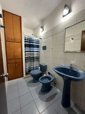 Baño y cocina cómodos y totalmente equipados, (calefactor, secador de pelo, heladera, cocina, microondas, licuadora, batidora, picadora, cafetera, tostadora, exprimidor, vajilla completa, etc.)