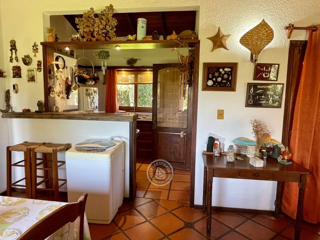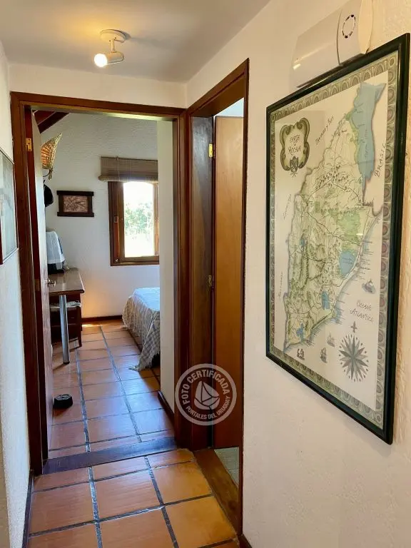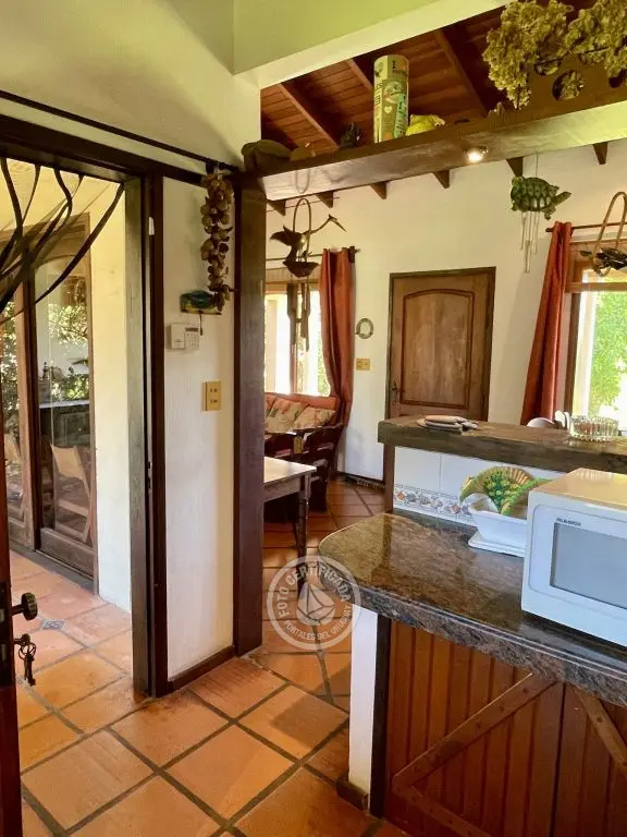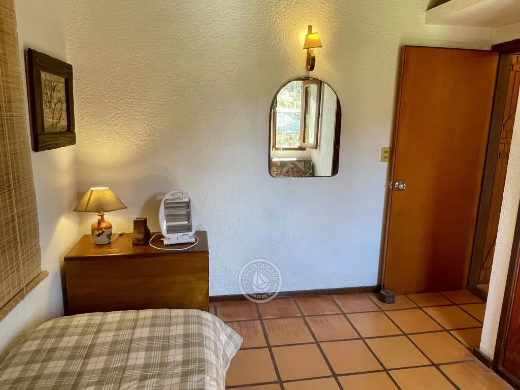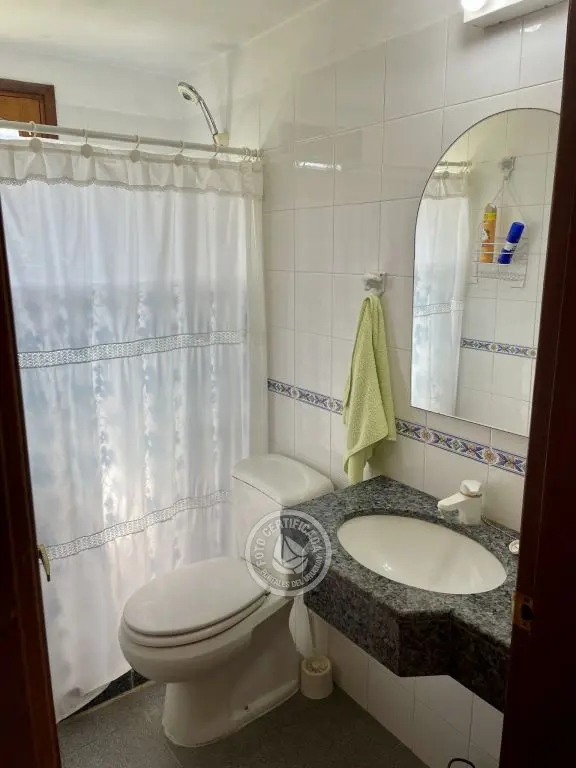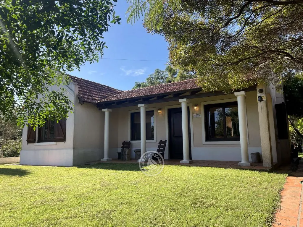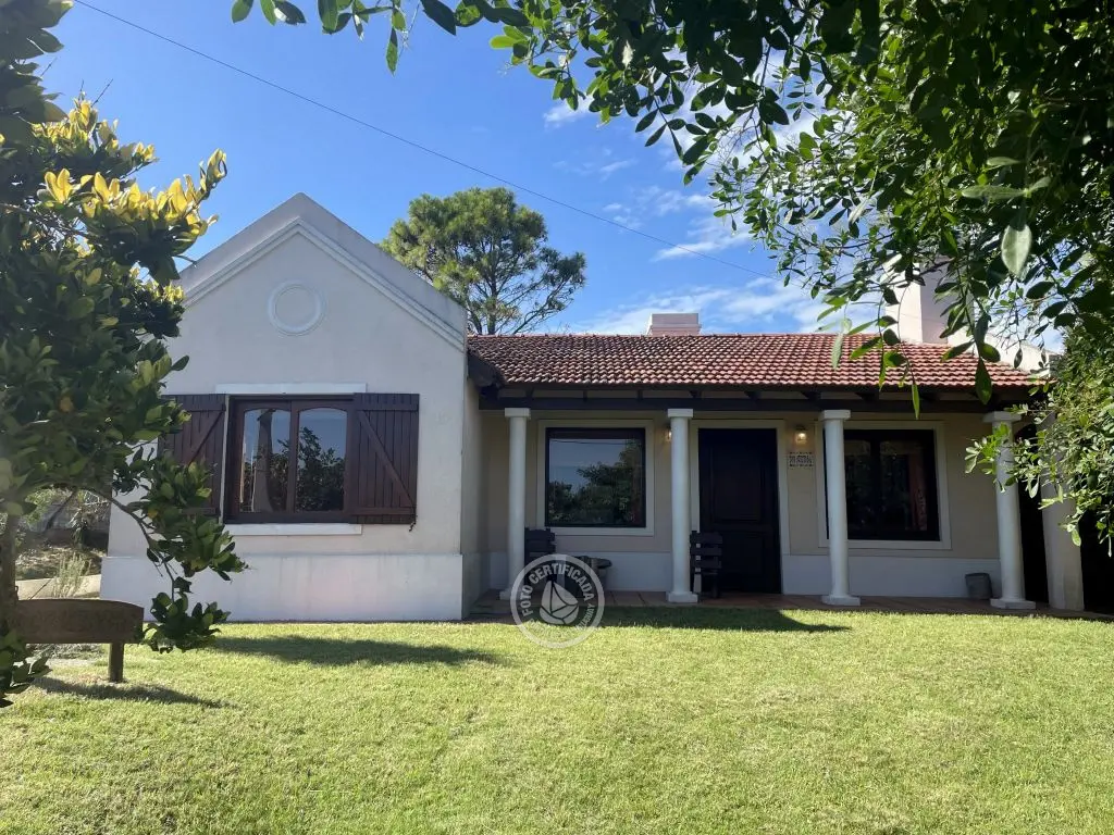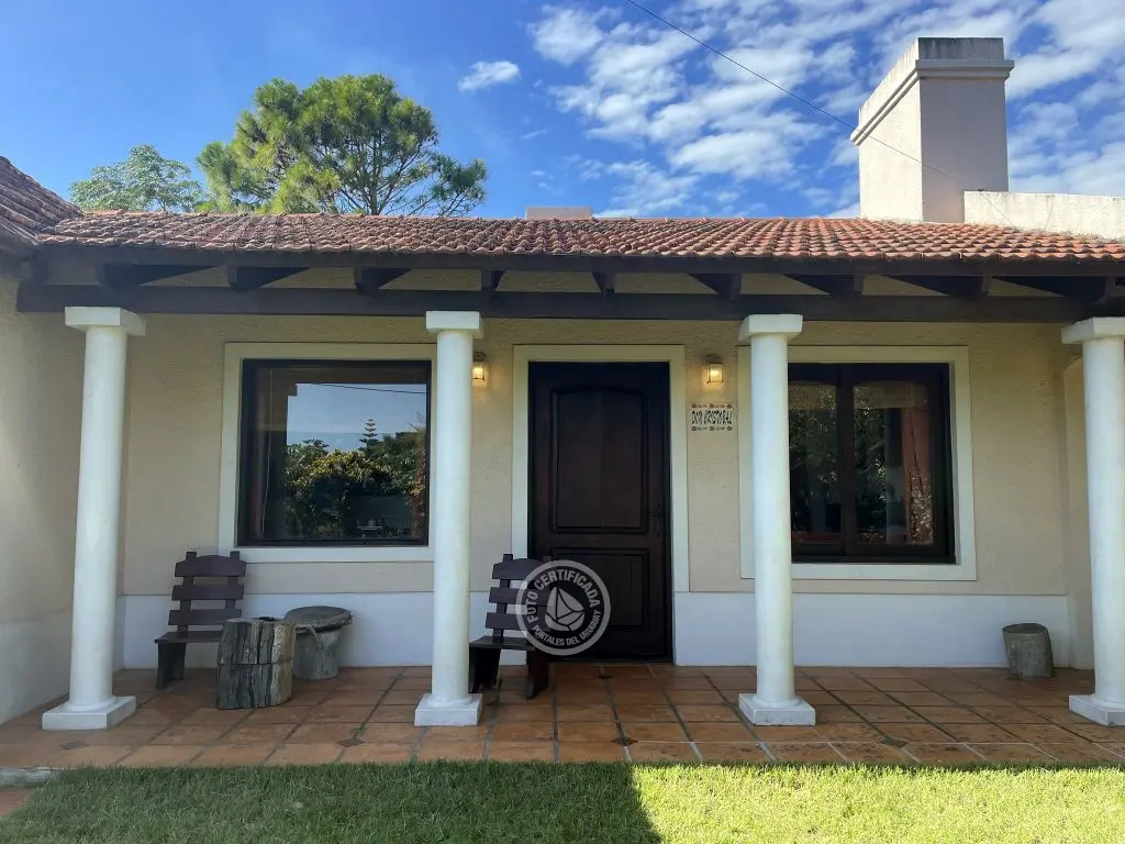 Casa muy bien decorada con jardín al frente y al fondo. Parrillero. Dos baños y dos dormitorios, uno con cama doble y otro con dos camas simples (marinera).
