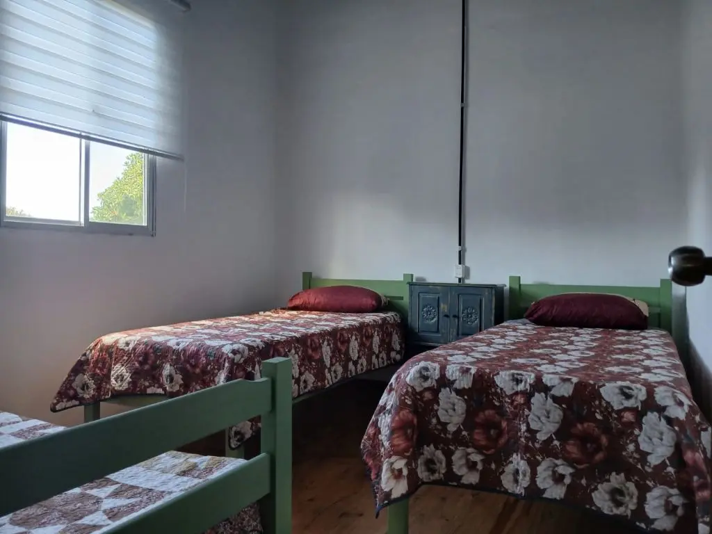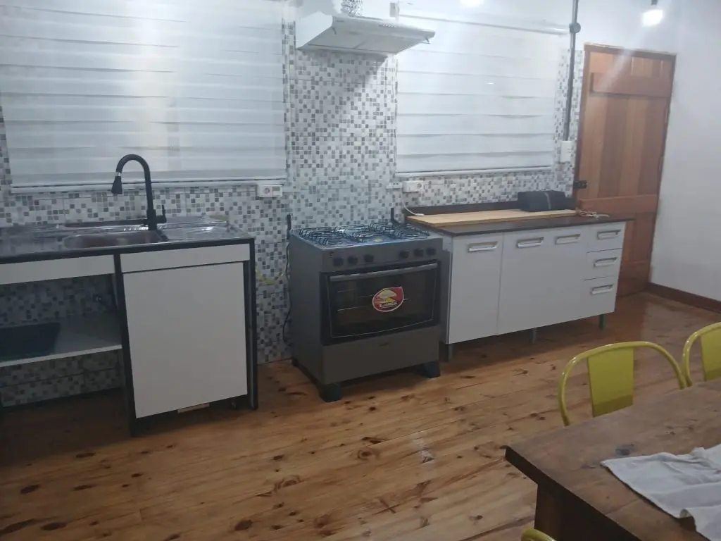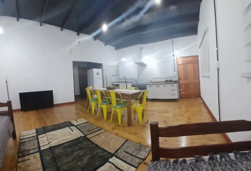 Casa de 2 dormitorios, dos baños, gran cocina y sala. Capacidad hasta diez huéspedes, 8 camas individuales, una matrimonial. WIFI 10 Gb iniciales. Sistema de recargas por pedidos del huésped. Tv 55" , pérgola con asador. Y mesa, amplio patio cercado.