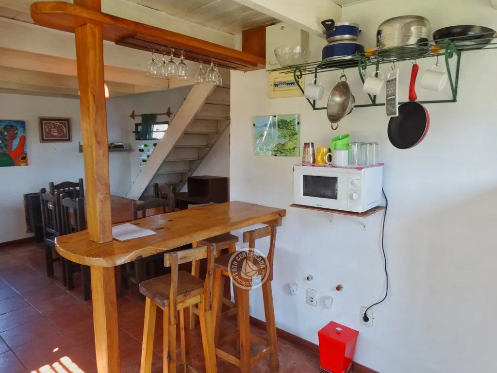 La cocina integrada con la sala de estar dispone de una amplia cocina totalmente equipada: cocina de gas, nevera y congelador, licuadora, horno, tostadora, microondas, sartenes, ollas, etc. ..