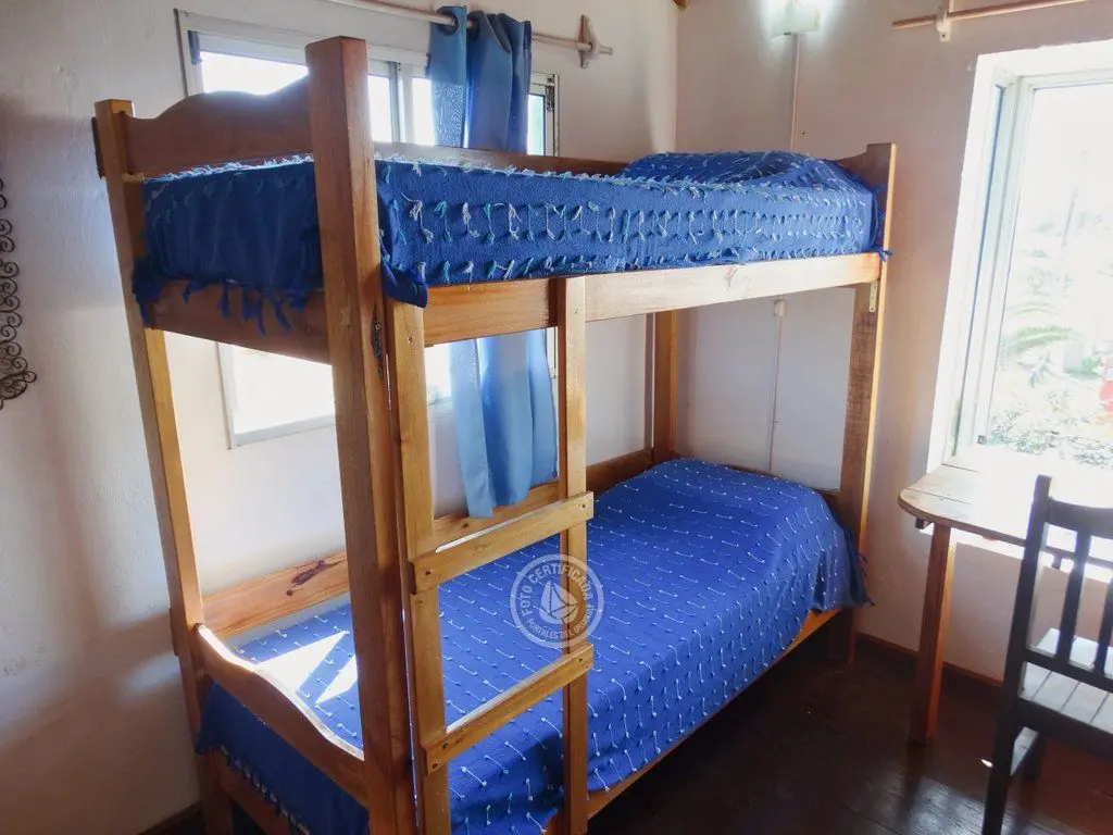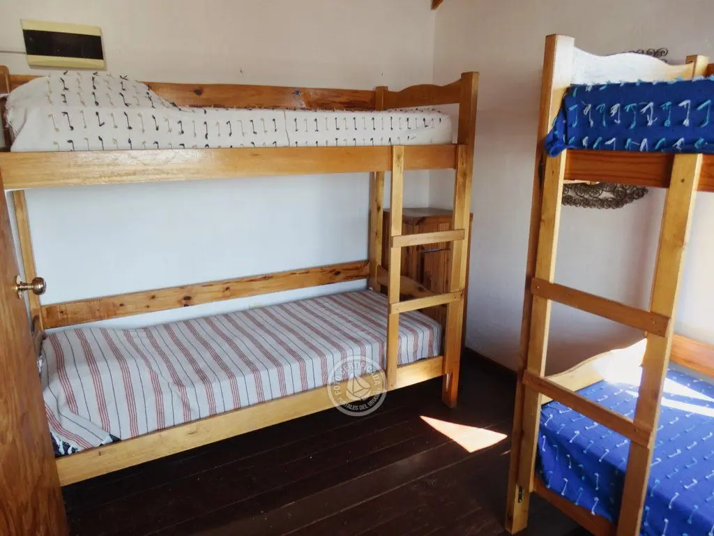Al lado se encuentra el segundo dormitorio con cuatro camas individuales (dos cuchetas) con un buen estudio/mesa de trabajo frente a la ventana.