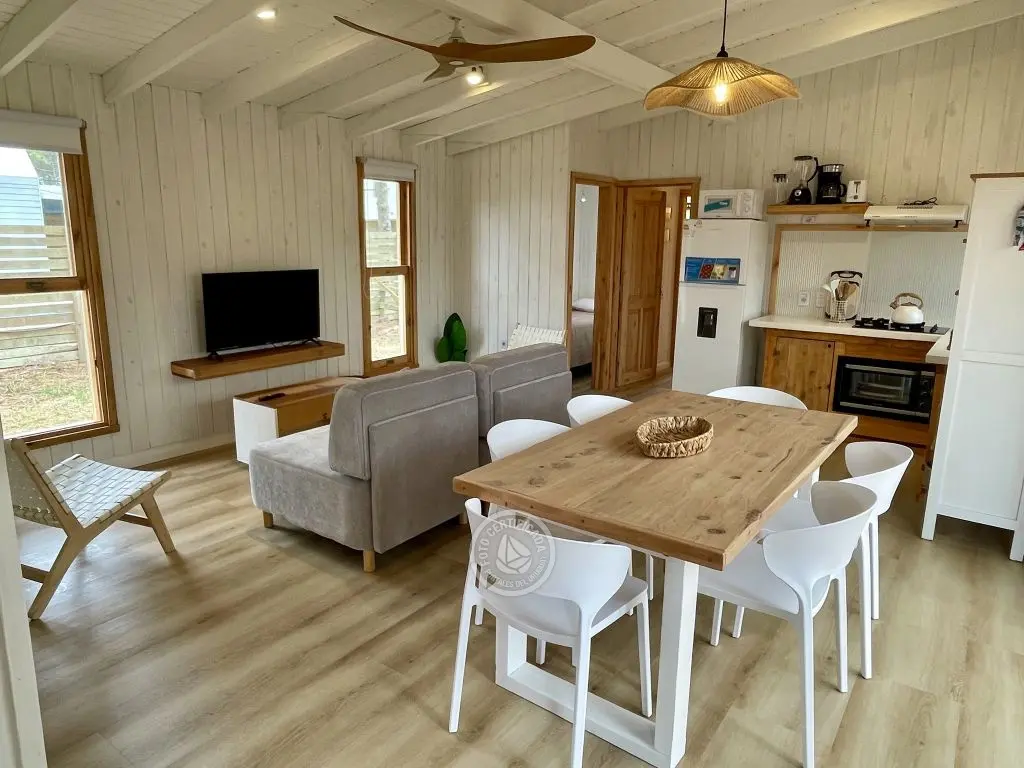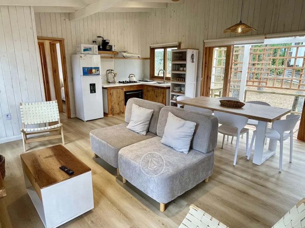 Casa para 5 personas ubicada en zona norte de Punta del Diablo. Totalmente equipada con deck, parrilero techado, tv y cocina completa, lista para que solo te ocupes de disfrutar. Rodeada de naturaleza a pasos de Playa del Rivero y Playa Grande, es perfecta para descansar, desconectar y vivir momentos únicos.