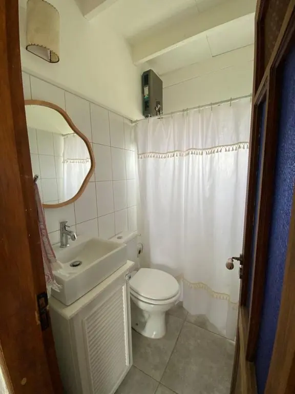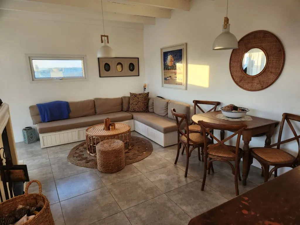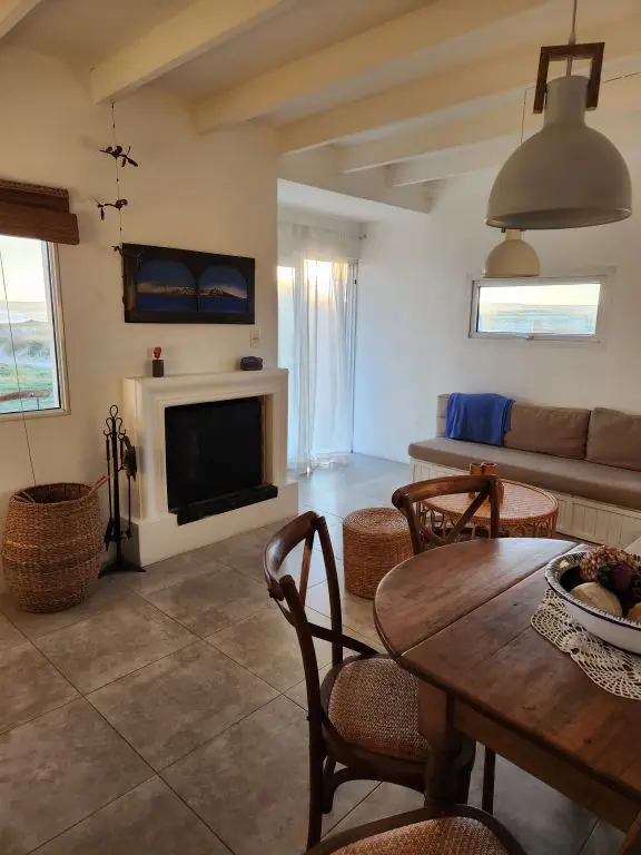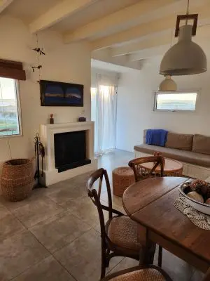 Dos dormitorios, uno con sommier de dos plazas y otro con dos camas de una plaza. Living cómodo con estufa a leña y kitchenette integrada. Baño con ducha y calefón a gas. Suministro de energía solar. Fogón con parrilla e instrumentos de cocina.
