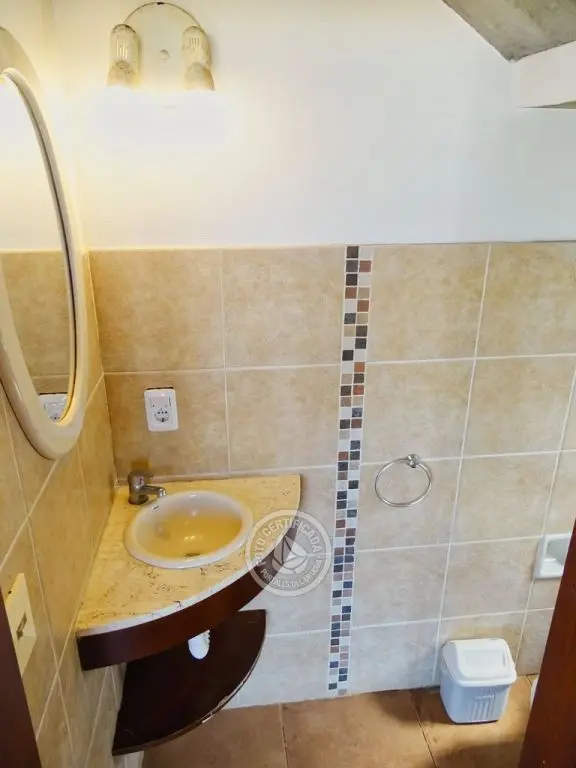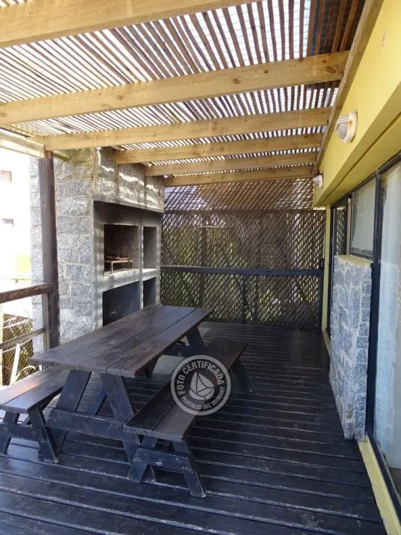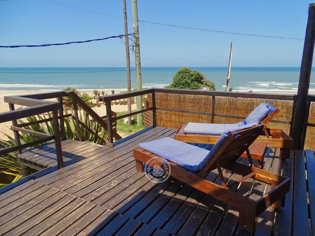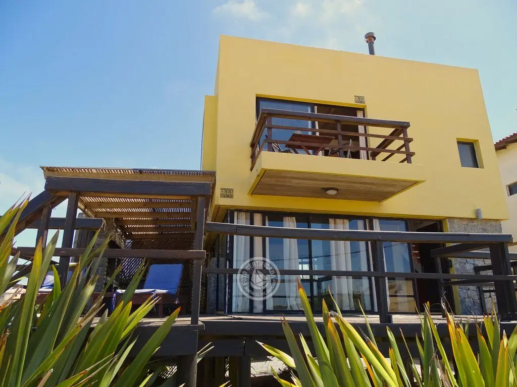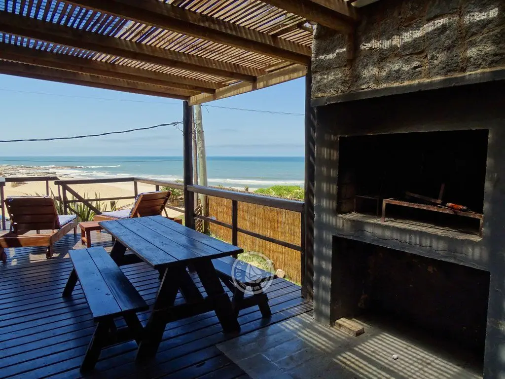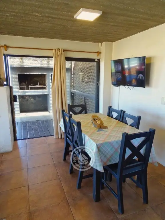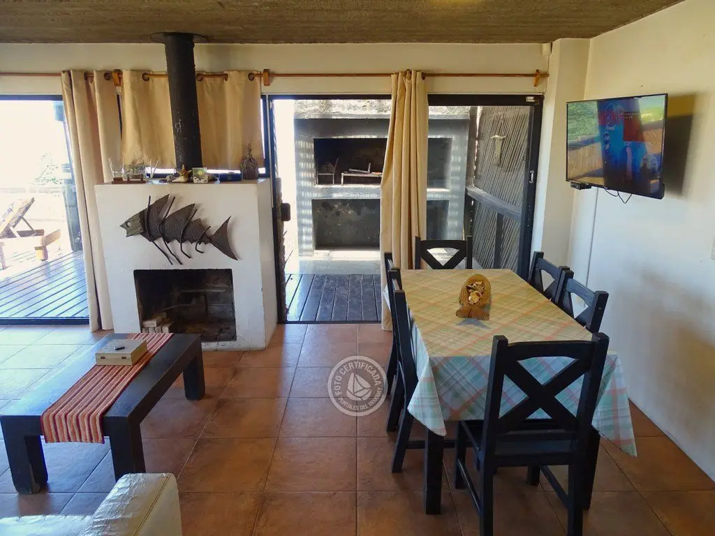 Planta baja living.comedor.cocina integrados, estufa a leña, con ventanales hacia el mar, baño social, y gran terraza con parrillero , internet .