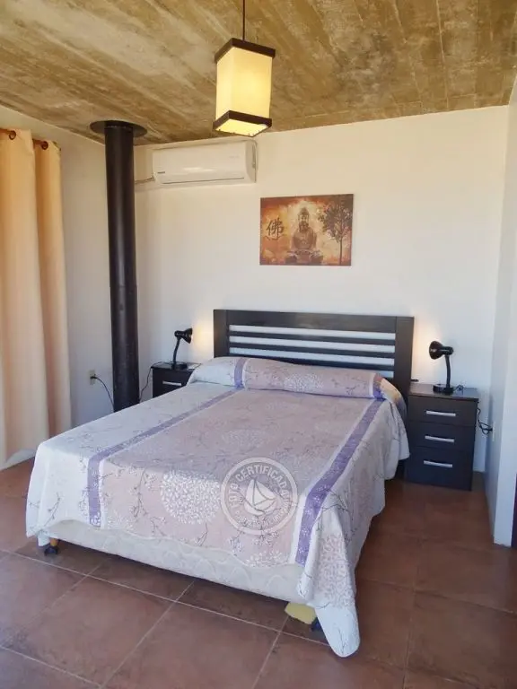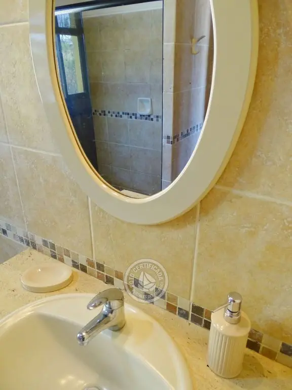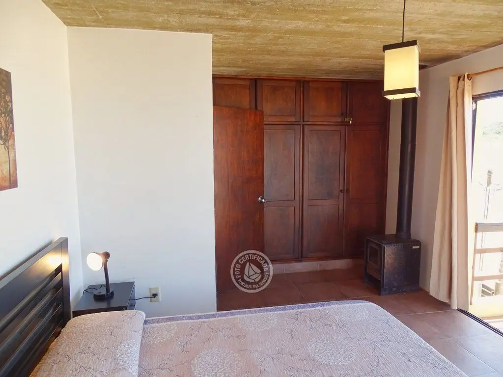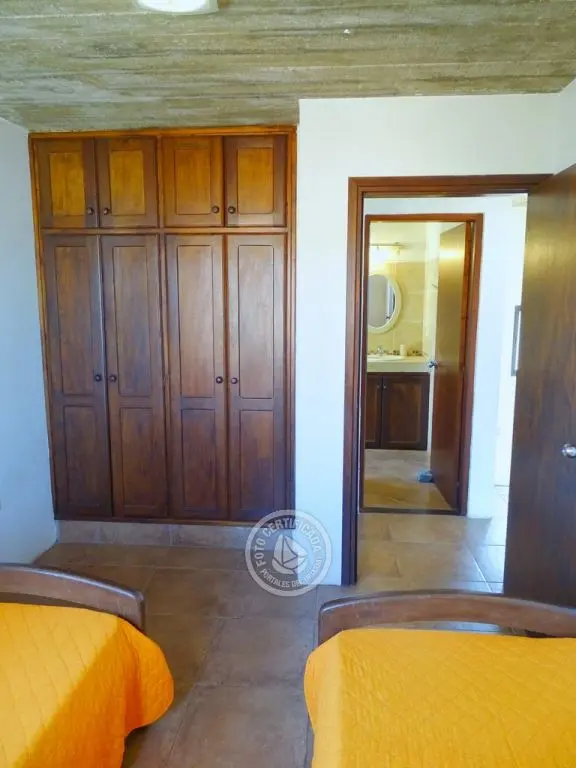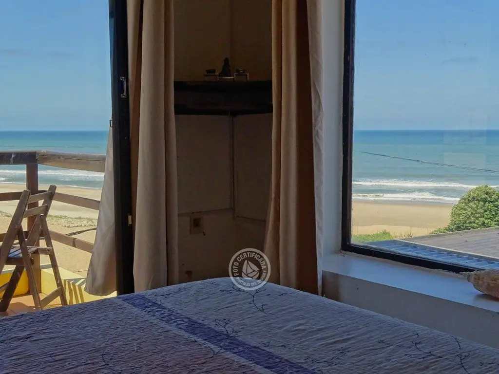 Planta alta dormitorio principal con balcón y ventanales al mar. Segundo dormitorio 2 camas , vista al pueblito y baño.