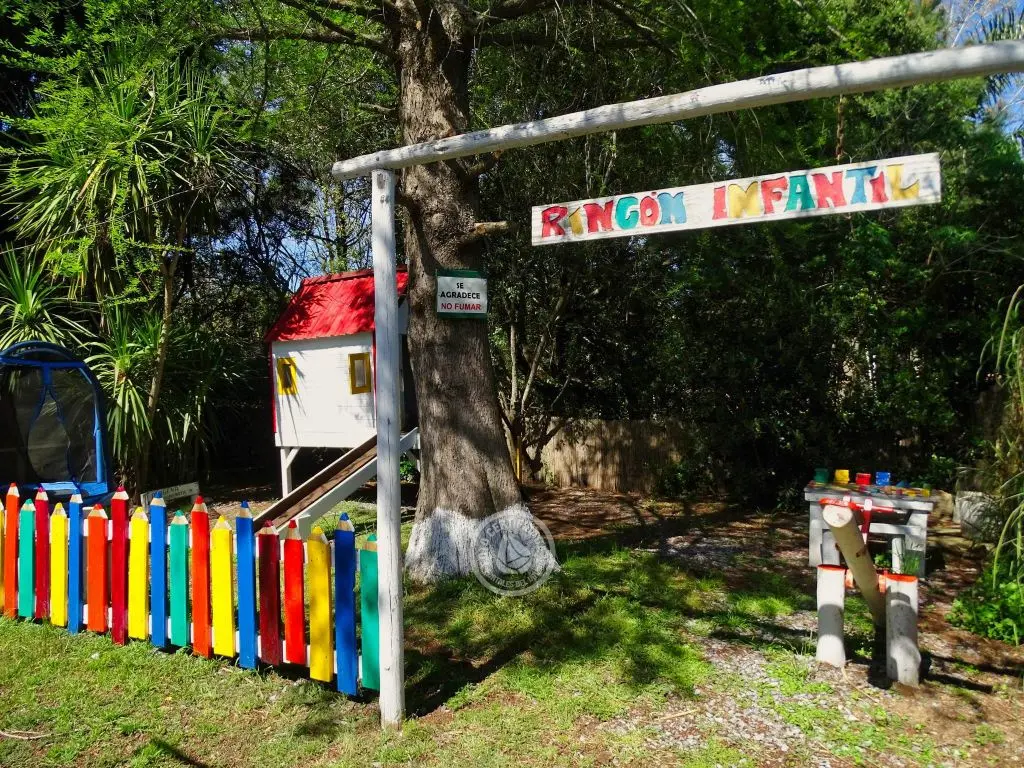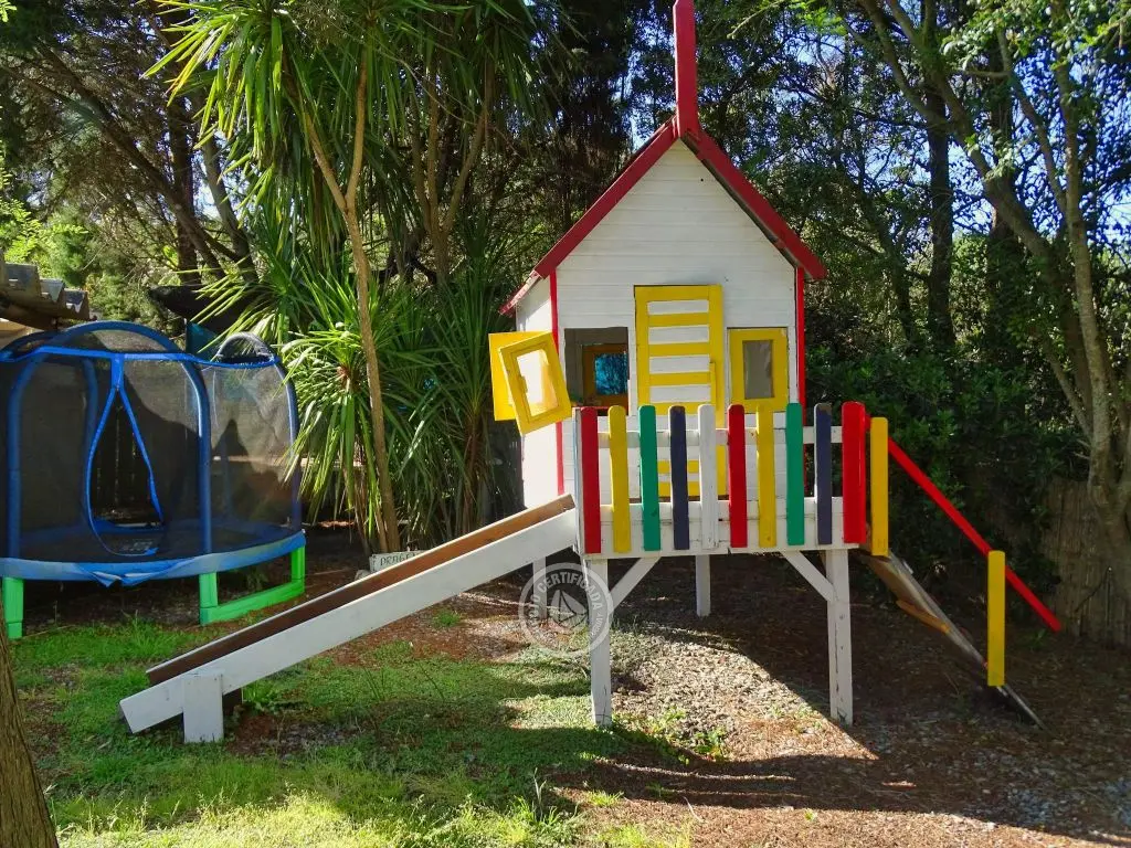 Espacio exterior con juegos (hamacas, subibaja, tobogán, casita de madera, ping-pong)