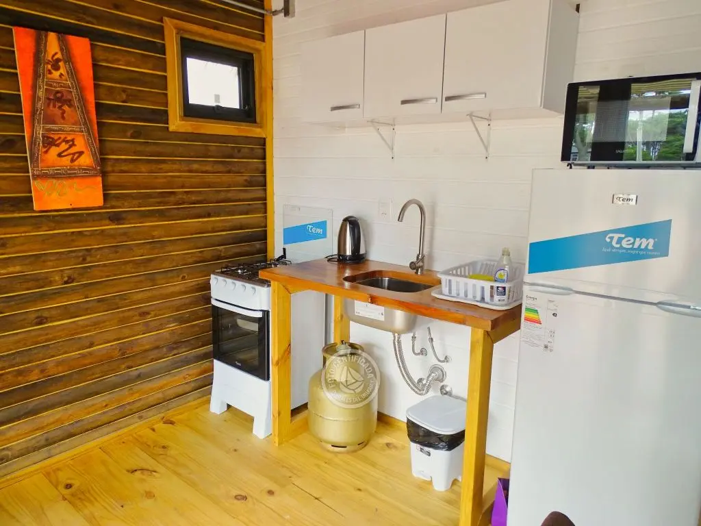4 apartamentos para 2 a 5 personas y 2 cabañas, 2 dormitorios, 1 baño, parrillero completo, Internet Wi-Fi, AC, estufa a leña en los apartamentos.