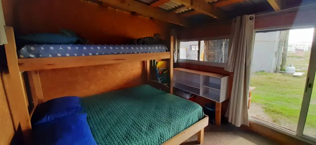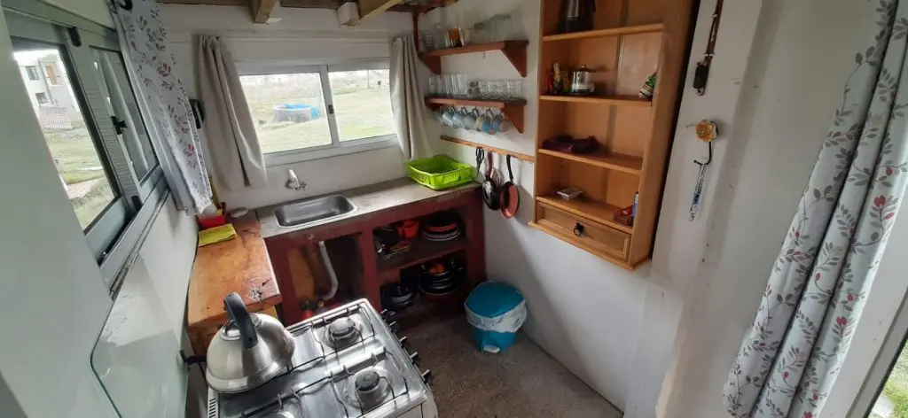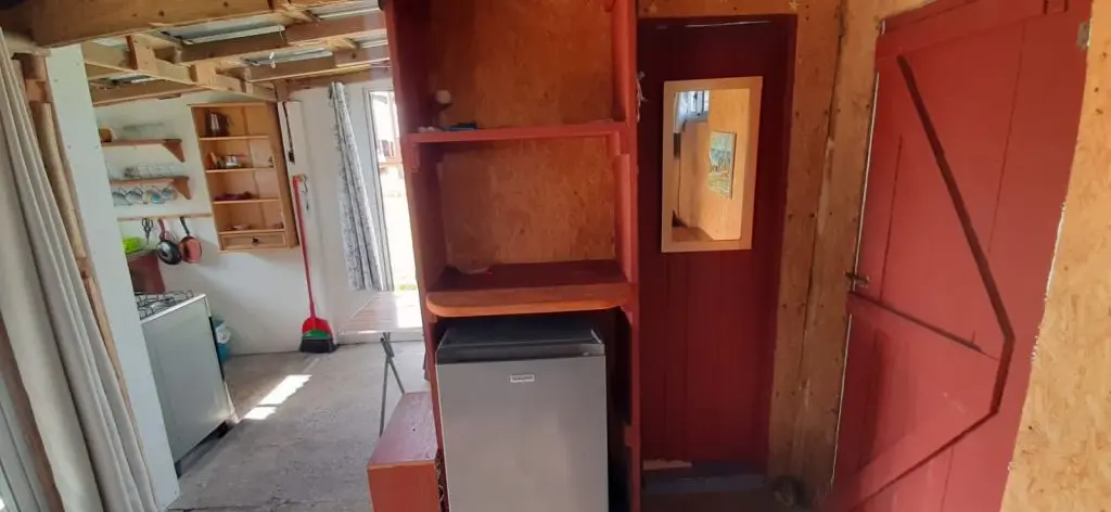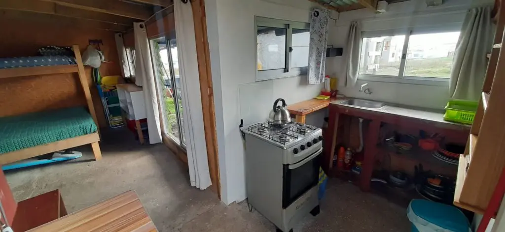 Típico Rancho Poloniense rustico, tipo monoambiente para hasta 3 personas, cerca de todo, con cargadores usb, luces led y frigobar. A 200 mts de la terminal de camiones, a 300 mts del centro, a 100 mts de PLAYA SUR.