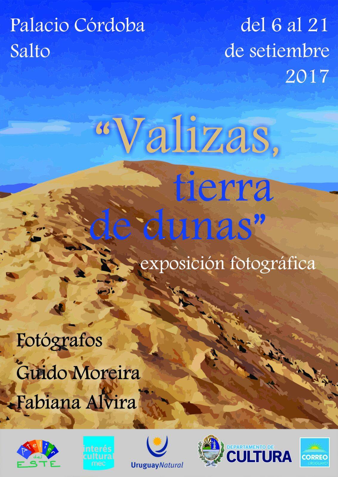 Del 6 al 21 de setiembre tendrá lugar en el Palacio Córdoba de Salto la exposición fotográfica "Valizas, tierra de dunas". En la ocasión se podrán disfrutar las obras de los fotógrafos Guido Moreira y Fabiana Alvira.