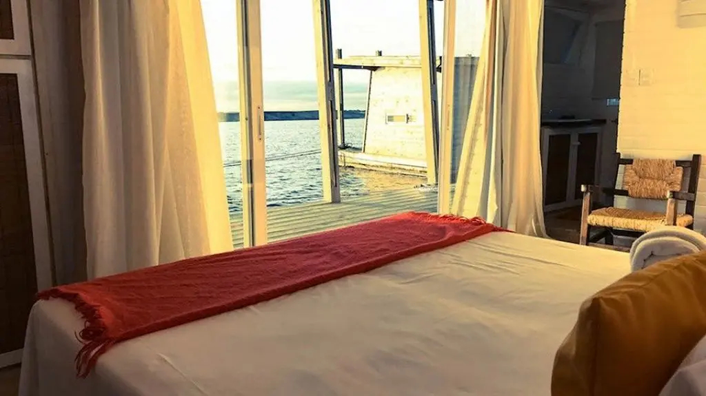 Dentro de la habitación, hay agua natural para lavarse los dientes porque la que sale de la canilla tiene algo de salinidad. El baño, los armarios, la heladera, el aire acondicionado te dejan anonadado que en una laguna haya tanto servicio. La percepción de abrir la ventana y ver mar hacia cualquier sector es una experiencia para los que quieran vivir un par de días de desenchufe y romanticismo. Además, es posible instalar una hamaca paraguaya para dejar ir el estrés y mirar la puesta del sol como en ningún otro sitio en Uruguay.
