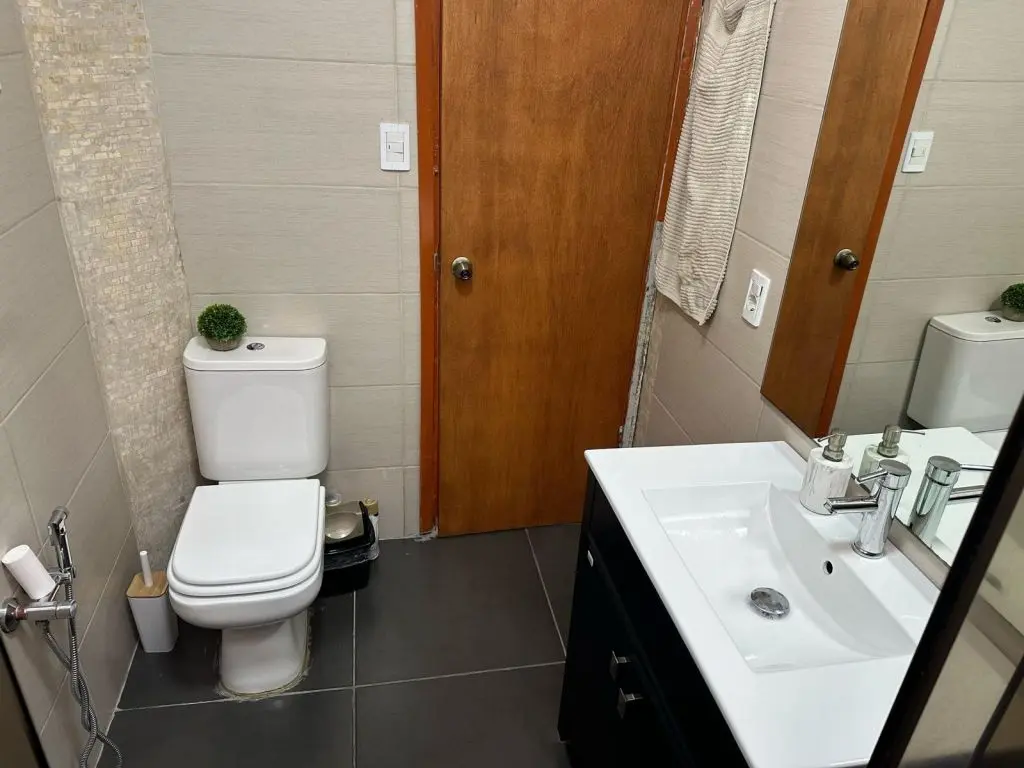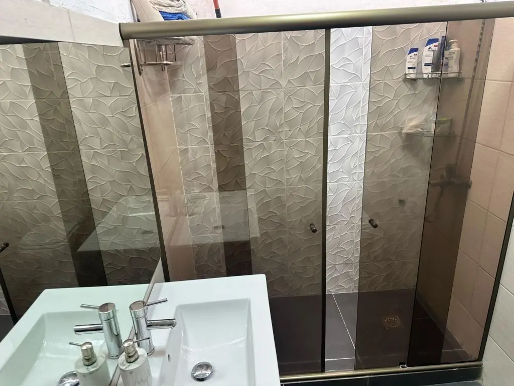 Baño con mampara reciclado.