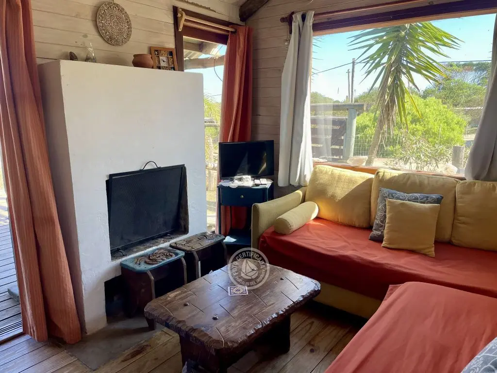 Living con dos sillones cama y estufa a leña