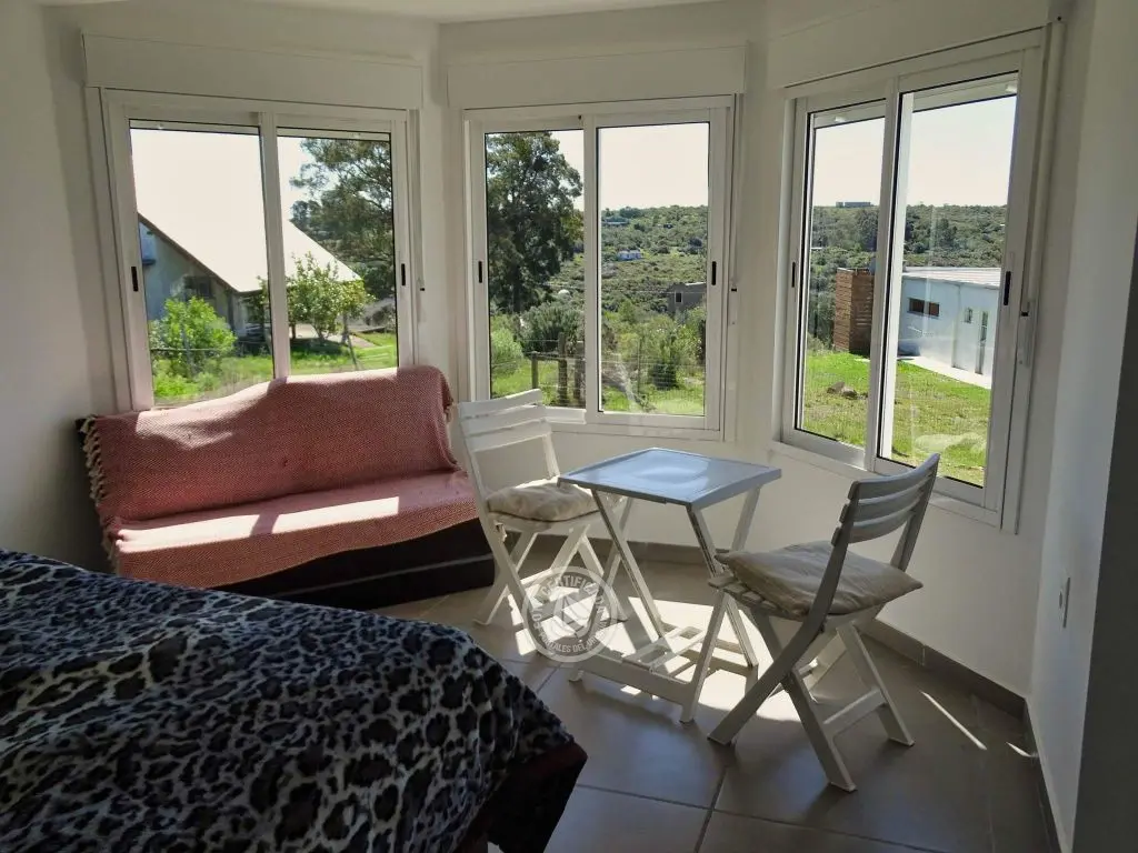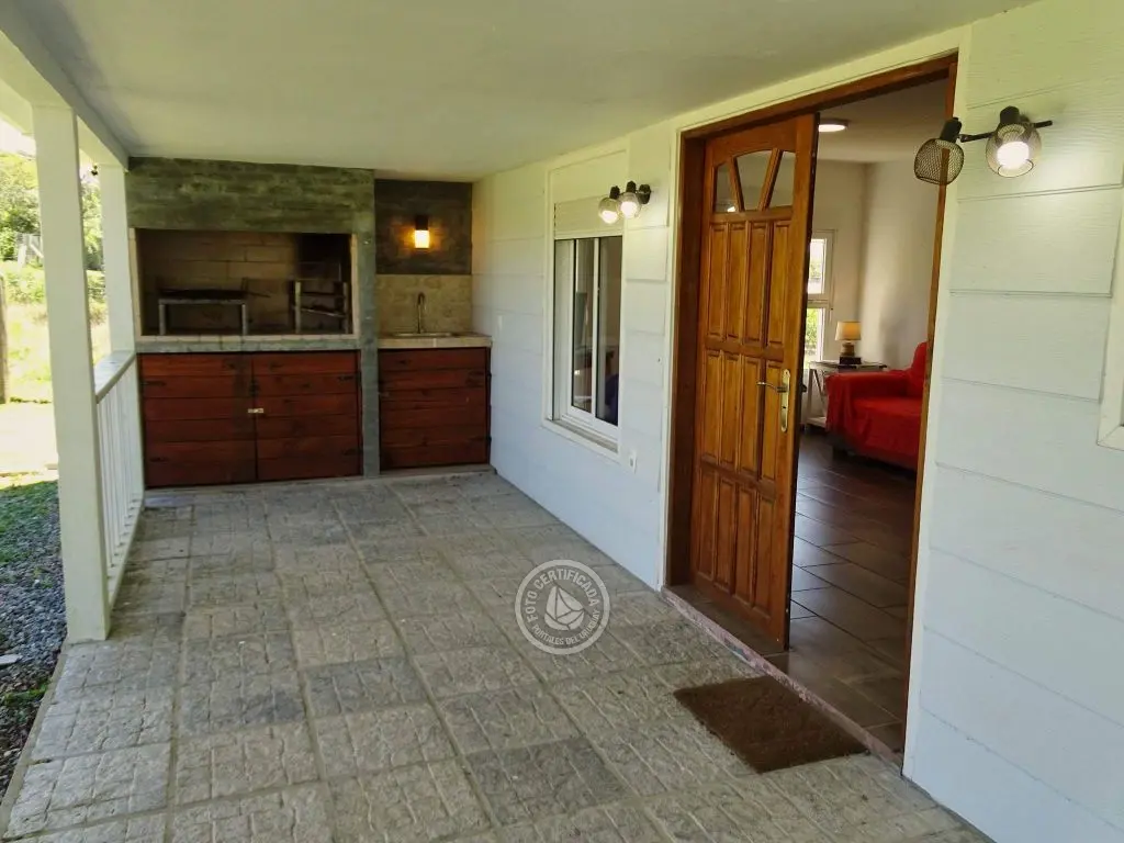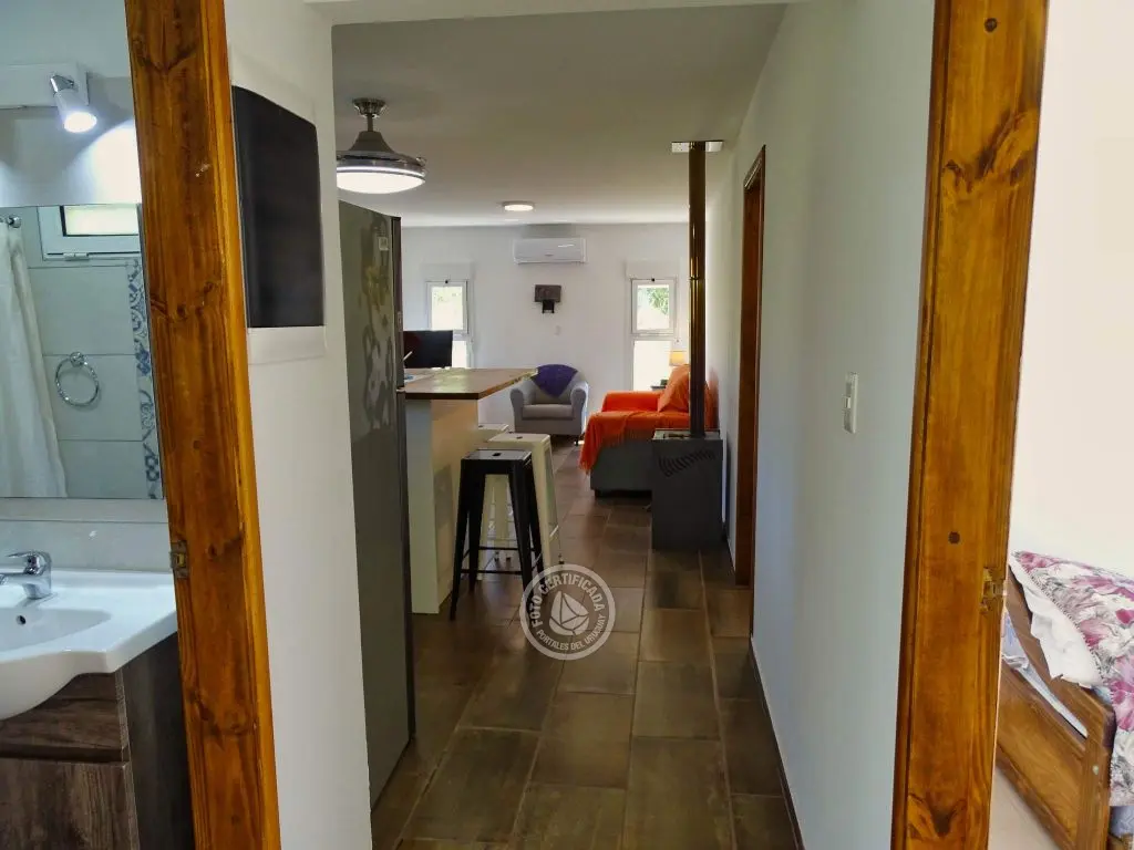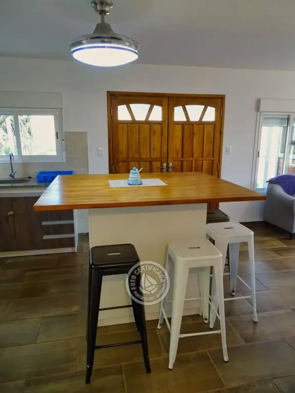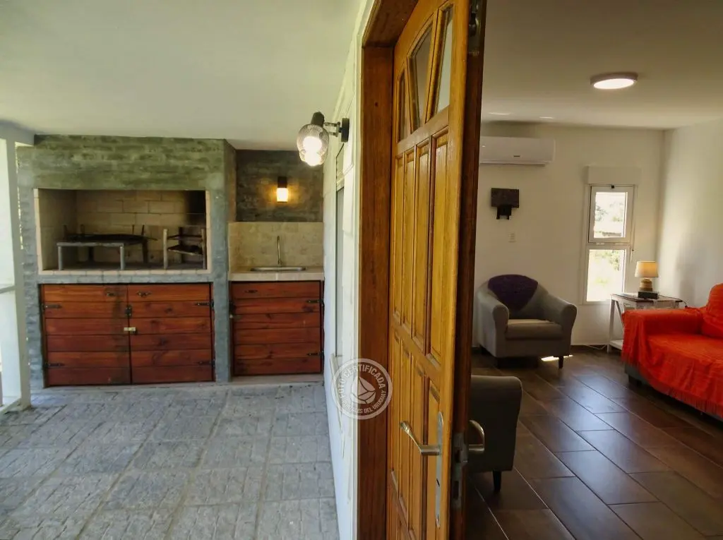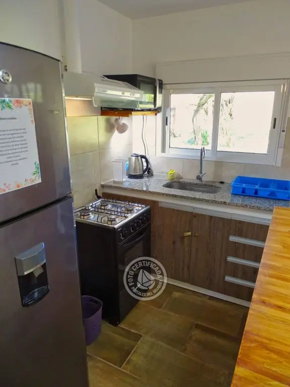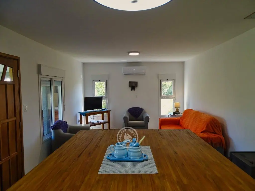 dos dormitorios, dos baños(uno en en suite),cocina completa con isla,living con cómodos sillones,Smart TV ,Direct TV,dos aires acondicionados,estufa de alto rendimiento,parrillero techado con mesada afuera, estacionamiento techado,luces interiores en cocina y dormitorio principal cálidas o frías.