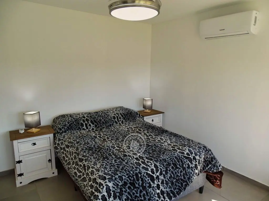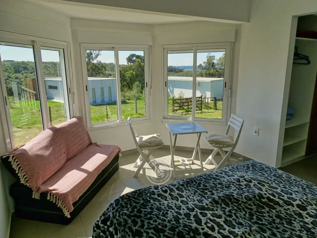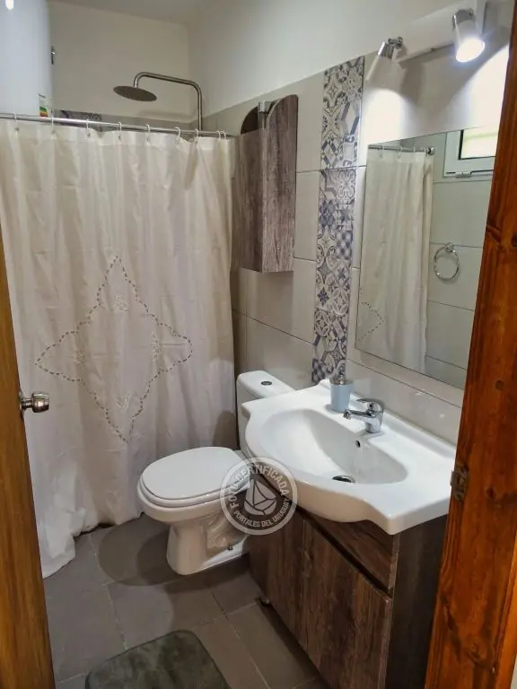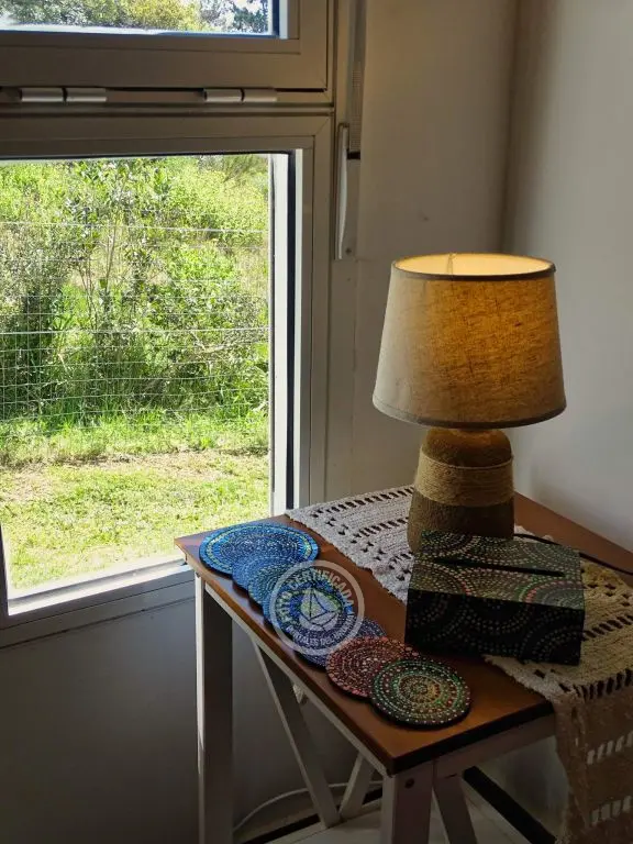 dos dormitorios, dos baños(uno en en suite),cocina completa con isla,living con cómodos sillones,Smart TV ,Direct TV(opcional),dos aires acondicionados,estufa de alto rendimiento,parrillero techado con mesada afuera, estacionamiento techado,luces interiores en cocina y dormitorio principal cálidas o frías.