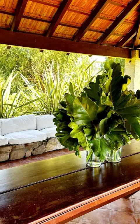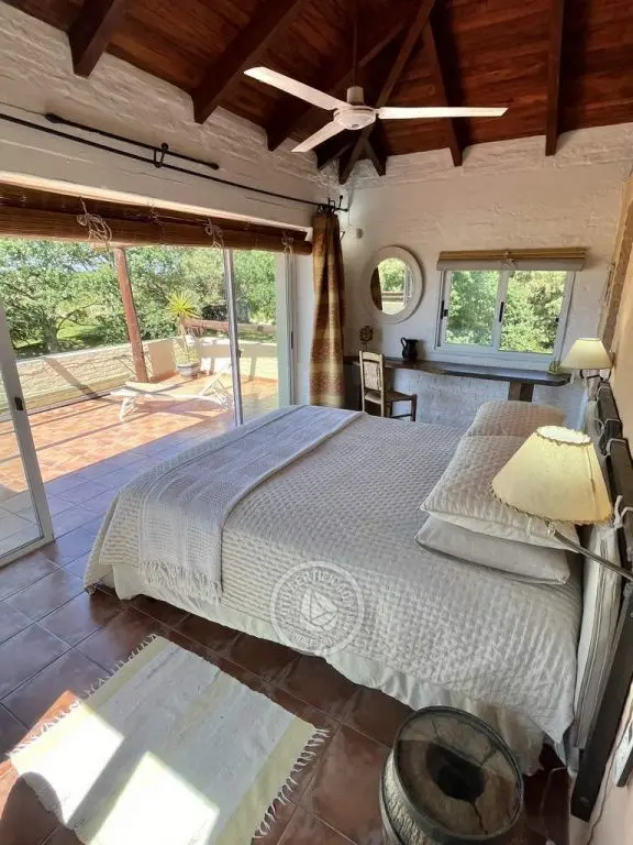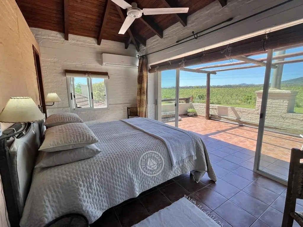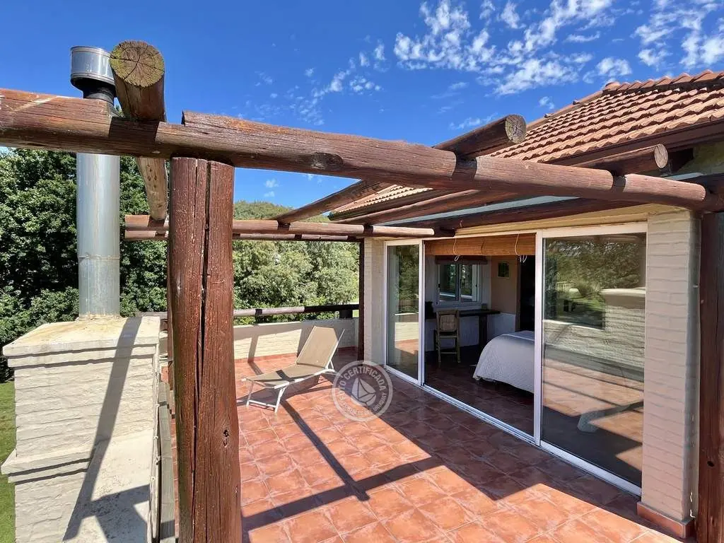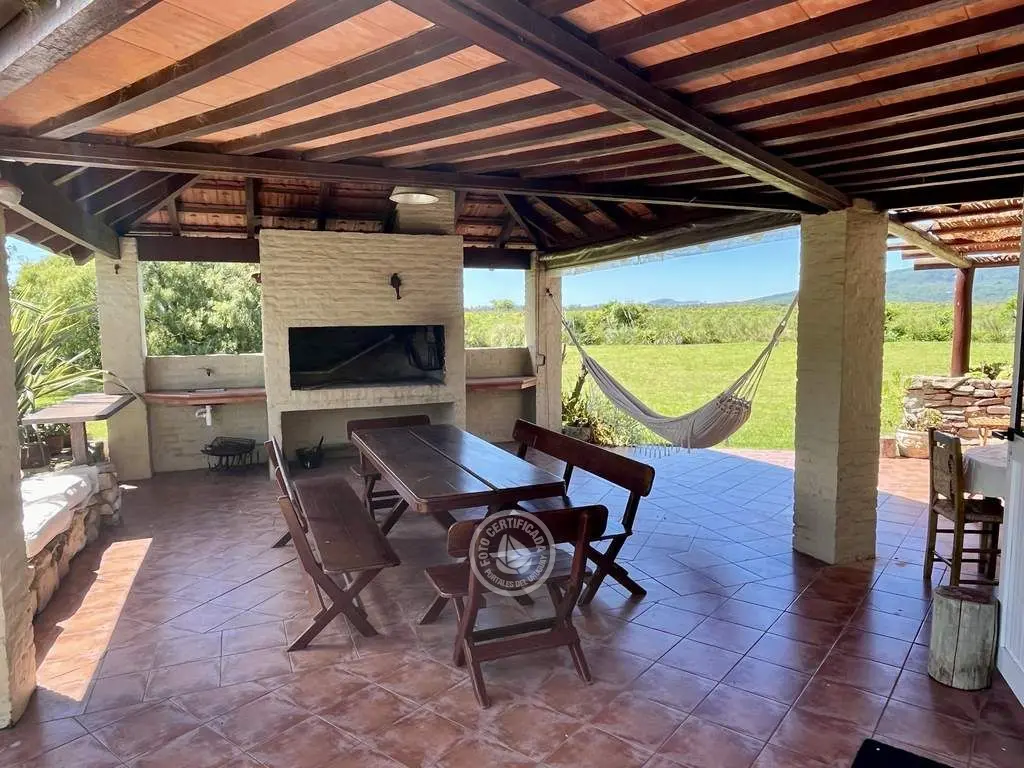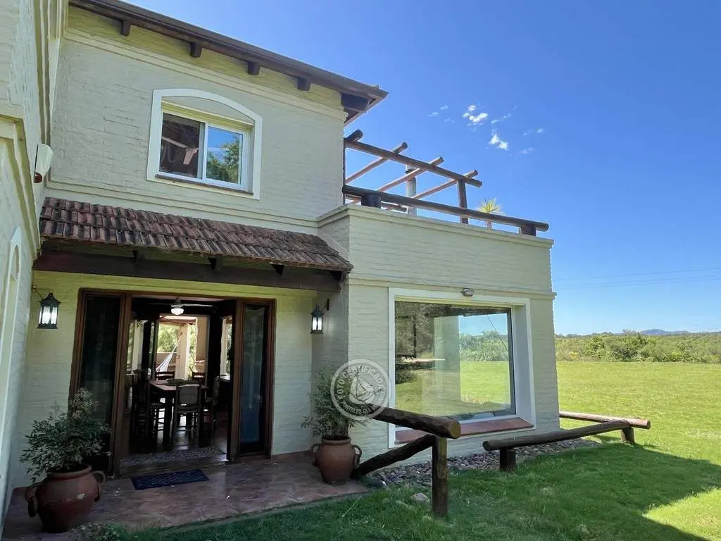 Vivienda de estilo rústico mediterráneo sumamente acogedora con 5.000 mts. de parque frente a 100 has. de campo, con una magnifica vista al Cerro. El enclave resulta perfecto si lo que se desea es una atmósfera apacible y de relax.