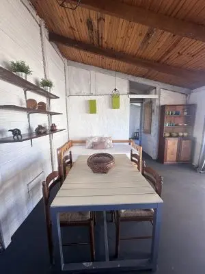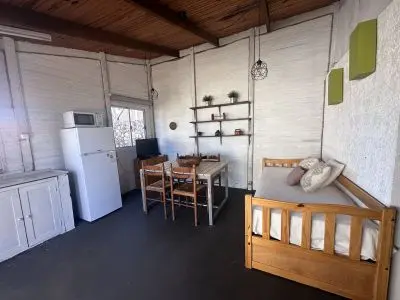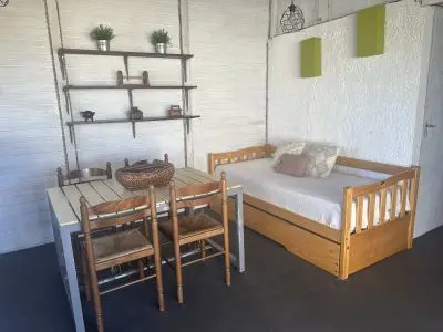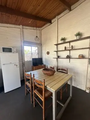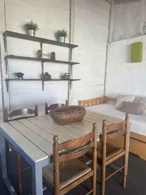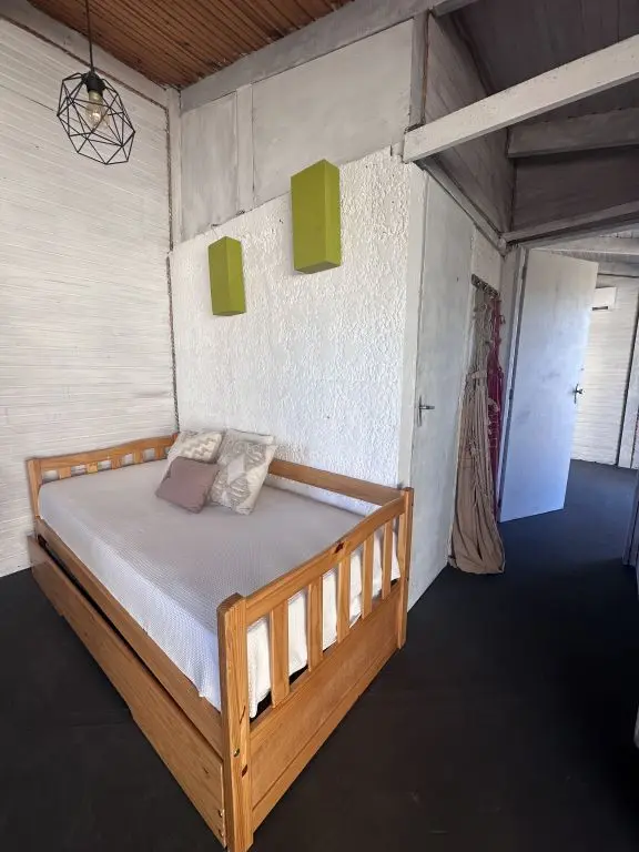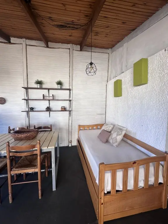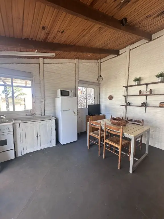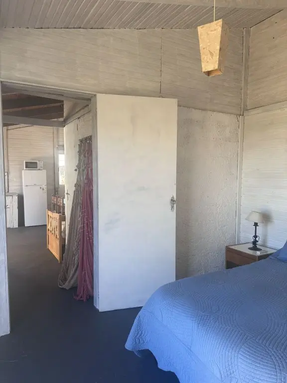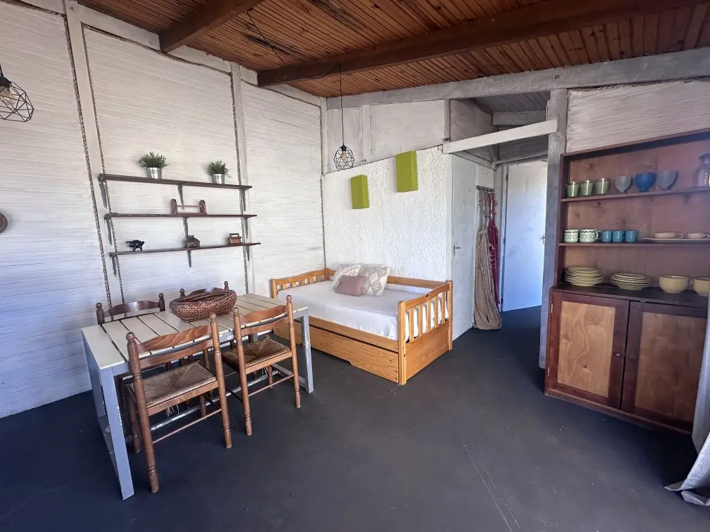 Cuenta con dormitorio con cama matrimonial y una cama marinera en la cocina-comedor.
