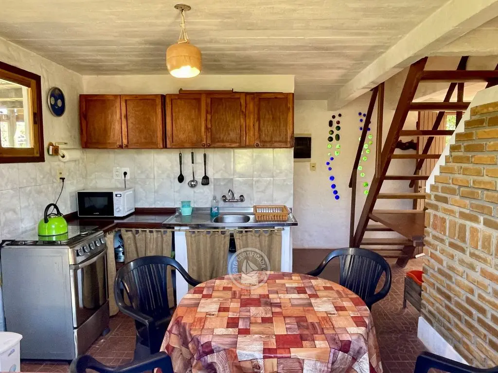 A 150 metros del mar, dos cabañas rodeadas de verde y privacidad, en un terreno de 500 metros cuadrados. Cabaña grande: hasta 5 personas. Cabaña chica: hasta 3 personas. Alojamientos exclusivos para familias o parejas. Se alquilan de manera independiente.