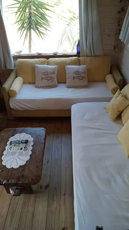 Living con dos sillones cama y estufa a leña