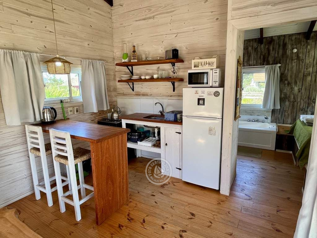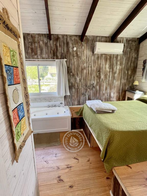 Cabaña en playa del Rivero para 2 o 3 personas con jacuzzi, estufa a leña, aire acondicionado, tv cable y cochera.