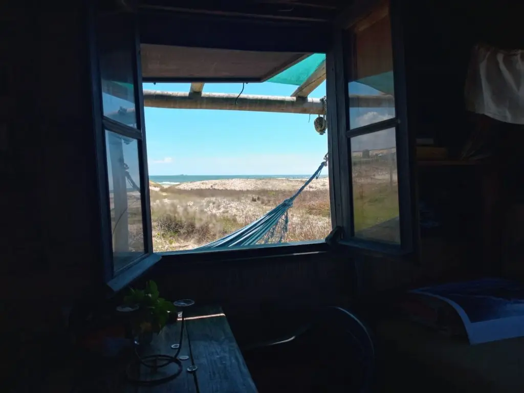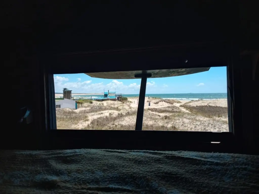Casa en playa norte a 50mts del mar, vista privilegiada a las dunas, isla de lobos y el faro. A 150 mts de la terminal y centro comercial. Equipado para 4 personas, cocina con horno a gas, salamandra, consta con energía de panel solar para cargar celulares y luz.