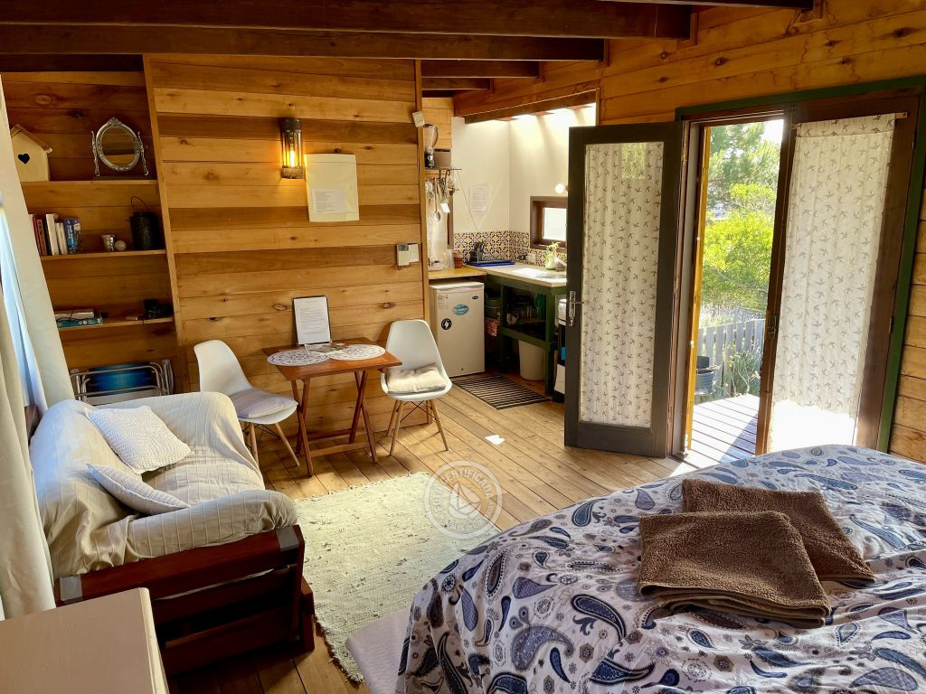 Mate Amargo es una cabaña de 27 m2,calida,sencilla y funcional.Ideal para parejas o viajeros(capacidad 2 personas).Equipada con todo lo necesario para una excelente estadia y disfrutar desde el deck la puesta del sol.Ubicada a 4 cuadras de la playa mas linda(Playa la Viuda)conocida por su tranquilidad y la inmensidad de sus dunas.La cabaña cuenta con wifi,aire acondicionado frio-calor,alarma y estacionameinto descubierto.Rincon intimo y acogedor,rodeado de pajaros y noches plagadas de estrellas.Predio completamente cercado,se aceptan mascotas.