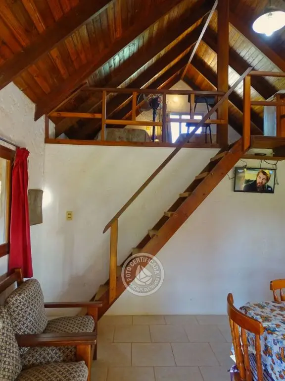 Complejo de 5 cabañas. Muy amplias y prolijas. Entrepiso con tres camas simples y dormitorio abajo c...