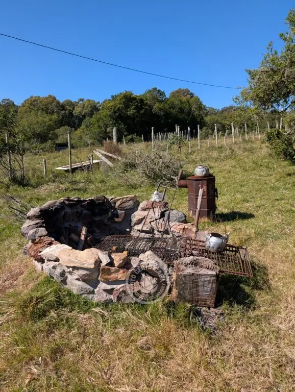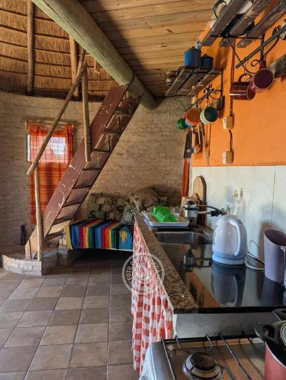 Cabaña para 3 a 5 personas. Amplio espacio natural con animales y barbacoa amplia techada de uso común. Vista panorámica a las sierras. Cañada y bosque nativo.