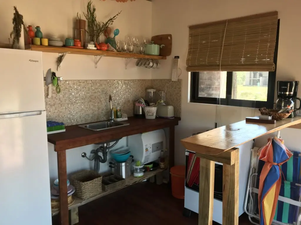 Cabaña amplio monoambiente, a 4 cuadras de la playa del Rivero, toralmente equipada