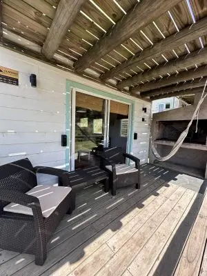 Experiencia unica entre la inmensidad del océano y la frescura del bosque , SoloMare Eco Cabins ofrece un descanso de lujo. Diseñado para el disfrute de la naturaleza, alejada de los vecinos y rodeados de un hermoso bosque con vista al mar. Solomare 1, forma parte del primer bloque construido en el complejo. Son cabañas muy bien pensadas en cuanto a su distribución como el mejor aprovechamiento de luz y ventilación. En planta baja living comedor con sillon-cama para 2 personas. baño y cocina. Salida a deck con parrillero de uso exclusivo. Hermosa piscina climatizada abierta para poder disfrutar aun en esos días ventosos que la playa se hace poco amigable. (Nov a Abril) A la noche enciende el fogón y disfruta de las estrellas Disfruta de un gran asado con parrillero en el deck de tu cabaña!