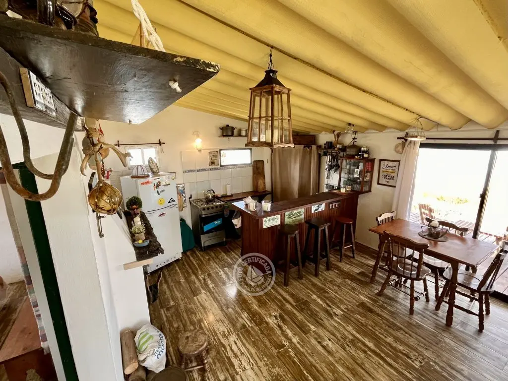 Cómoda y amplia casa sobre las rocas, con una vista privilegiada. Cuenta con cocina completa, estufa a leña y fogón. Luz por panel, heladera y calefón a gas.